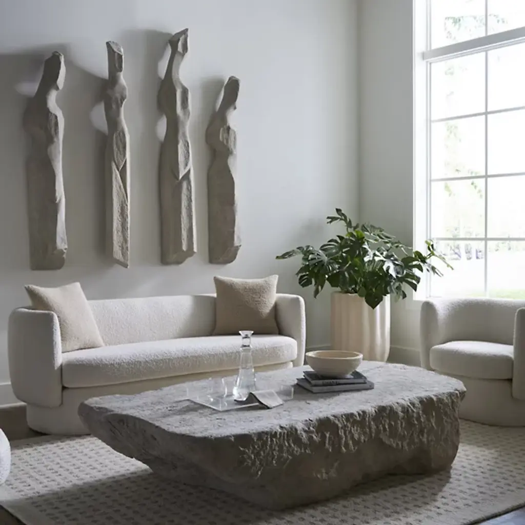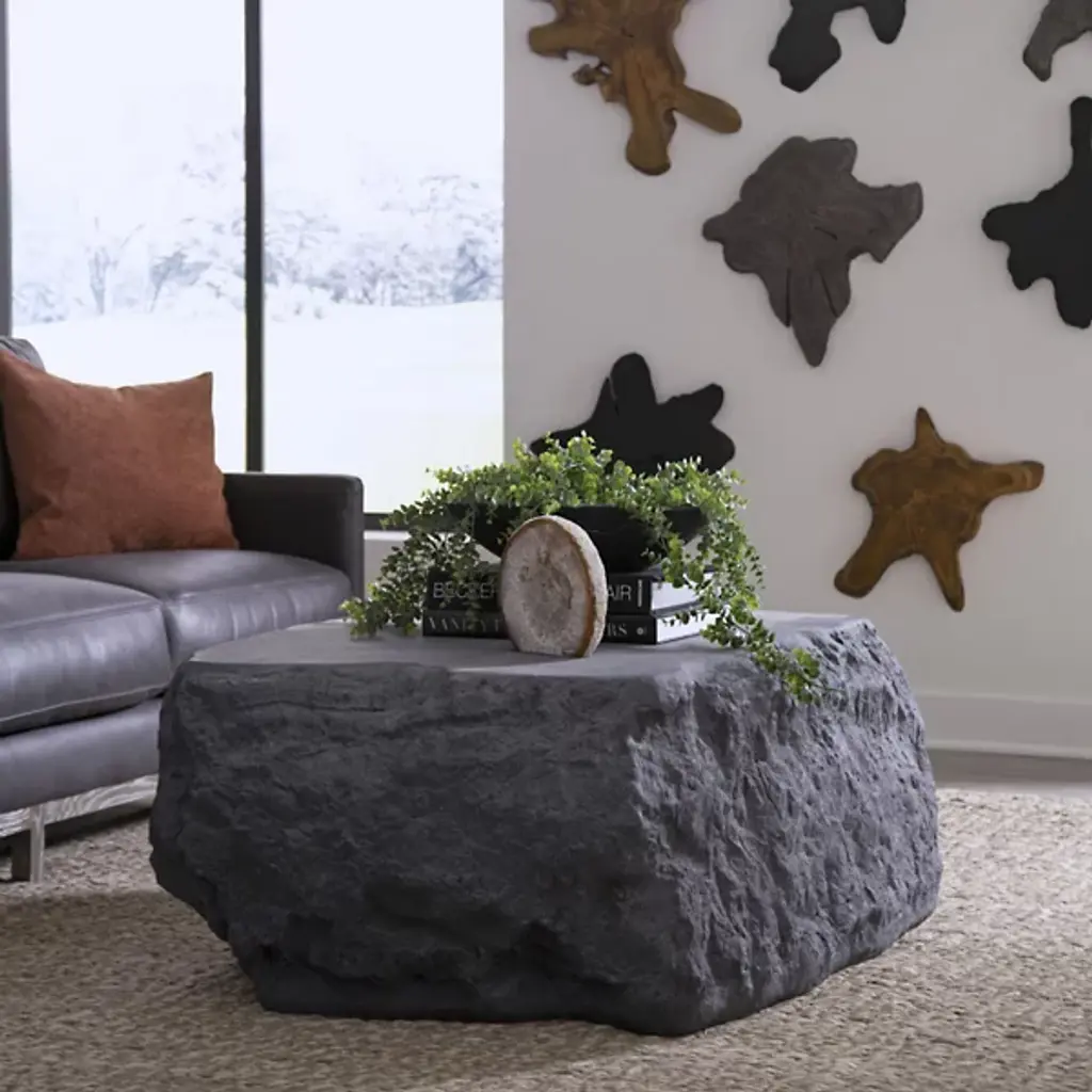 The Quarry Coffee Table from Phillips Collection combines organic form with modern materials, featuring a rocky shape and uneven edges that bring rustic charm to any room. Made from durable, lightweight composite, it’s both functional and stylish, making it a versatile statement piece for any decor. Whether as a focal point or for everyday use, this coffee table adds a bold, natural-inspired aesthetic that effortlessly enhances any interior space.