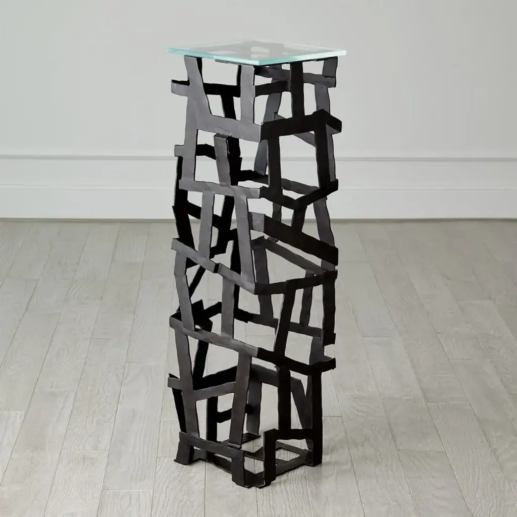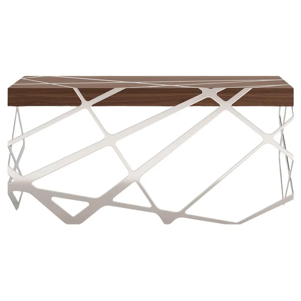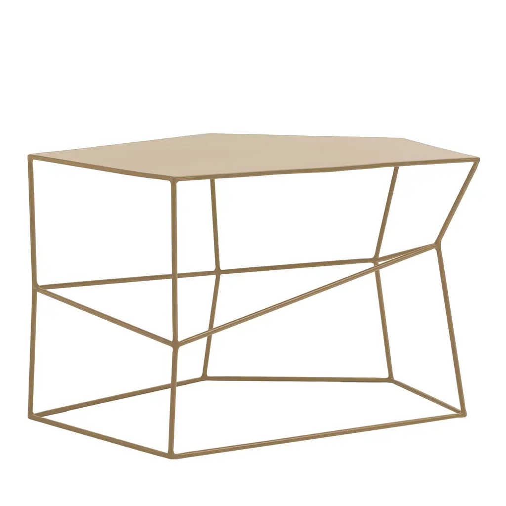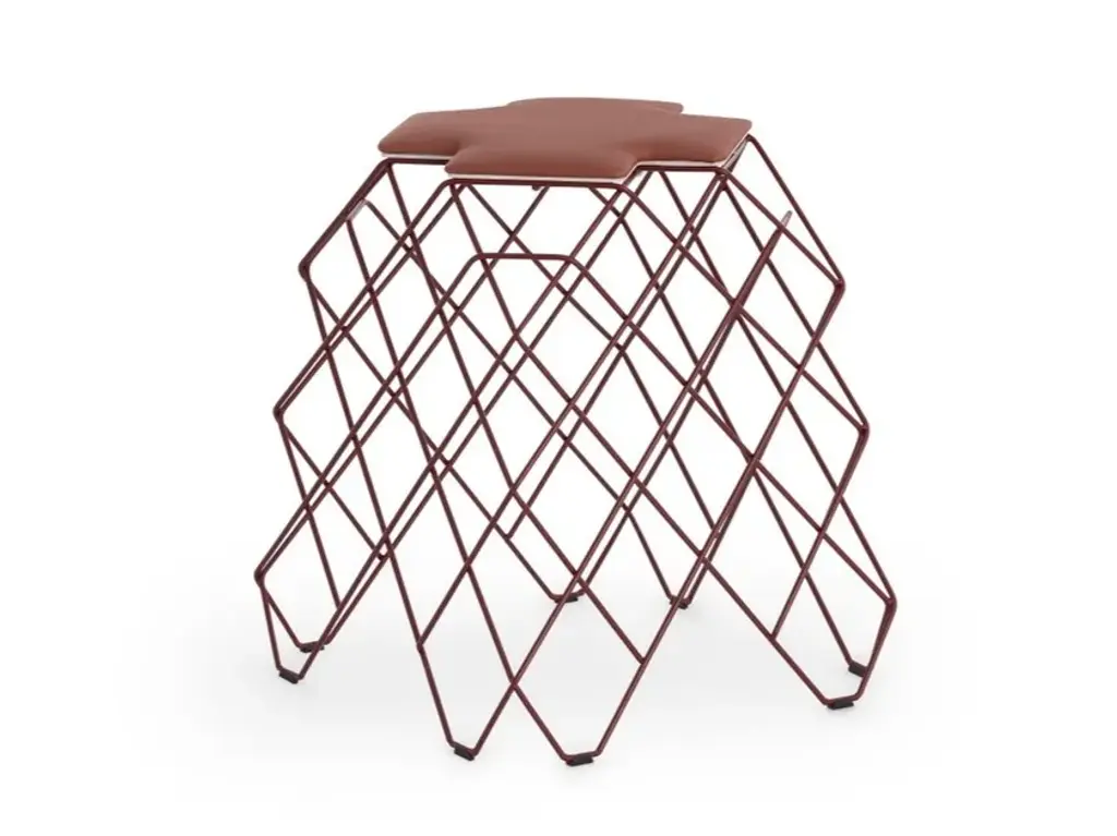 R24 is a powder coated steel coffee table with clear glass top.Colors: White, Agate grey, Sand, Gold, Bronze, Wine red, Blue grey, Grey blue, Night blue, Cement grey, Bottle green, Quartz grey, Anthracite, Black.R24 is a collection designed by Argentinian architect Paula Valentini, created in the course of an exchange with the Museum of Contemporary Art of Buenos Aires and its collection of geometric abstraction. These pieces, which are now included in the Gandiablasco outdoor furniture catalogue with only two elements, respond to the challenge of creating low stools and side tables that are as light as they are resistant. R24 contributes with its versatility to create spaces to enjoy the outdoor environment accompanying from the subtlety of its fabric in a single material. R24 designs are handcrafted in India. Using 5 mm diameter stainless steel rods bent, intertwined and arranged, in a structured pattern, a weave is used to create a firm structure into a continuous skin. The innovation of R24 lies in its ethereal support, achieved by dematerializing edges and substructures and avoiding the bracing rings to achieve continuity. The result is pieces that generate degrees of opacity and, in the particular case of the stools, emulate a kaleidoscopic and sculptural image when stacked. As far as finishes are concerned, the R24 elements can be thermo-lacquered in all the standard tones of the Gandiablasco colour chart. On the one hand, the stool functions as a support commodity and is available with or without an upholstered cushion -also handmade in India-, composed of a base of Gravidry® filtering polyurethane foam and a layer of wadding on the surface, so as to achieve a tactile and comfortable feel when sitting while at the same time obtaining breathability and quick-drying properties without the need to remove the covers. On the other hand, the side table comes from the expansion of the support surface and the consequent inversion of the geometric volume of the original stool. This element has an extra-clear tempered glass top that is attached to the structure by means of Velcro. Valentini's vision of design fuses her training as an architect and an extensive background in fields such as art and urban planning. In R24 she investigates the possibility of constructing a textile architecture on a sall scale.