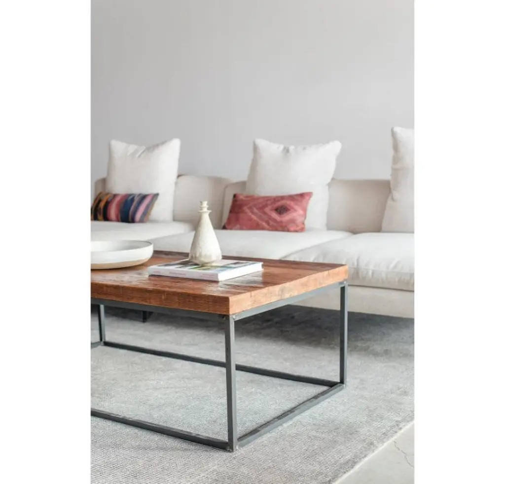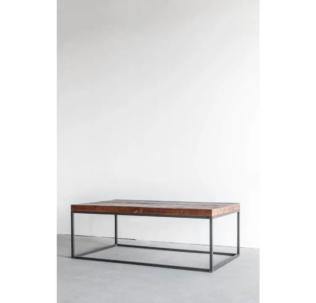 The Railcar Coffee Table celebrates the raw and rugged beauty of natural materials with a thick, 2" Douglas fir top that is sustainably sourced from Southern California architecture. The natural knots and unique grains of the wood provide a rustic and organic feel to the piece. Paired with the clean lines of the industrial steel base, this coffee table embodies the perfect balance of natural and industrial elements.Reclaimed wood has a wide range of color and texture due to weathering. The wood is up cycled from various sources so no two pieces are alike. As a result, cracks, nail holes and uneven surface textures are to be expected. Handcrafted in Los Angeles, California by a small and dedicated team, the Railcar Coffee Table is made to order to ensure that every piece we build meets the unique needs and preferences of the customer.Industrial Steel + Reclaimed Doug FirWax FinishFor all furniture, protection from heat and moisture is crucial to the longevity of the piece. To help prevent scratches, use adhesive felt pads, coasters, placemats, and avoid sliding objects across the surface of the piece when possible.Lacquer + Paint + Metal Surfaces - Dry dust with a clean microfiber or feather duster. Wipe with a slightly damp microfiber towel and mild cleaner as needed. Wipe dry promptly. We recommend that you clean with ammonia-free Windex or a mild surface cleaner. Please stay away from bleach, alcohol, or petroleum based cleaners. You may use a general purpose wood cleaner.Avoid using furniture polish as over time it can accumulate and leave a residue.Wax + Oil Finish - Dry dust with a clean microfiber or feather duster. Wipe with a slightly damp microfiber towel. Wipe dry immediately. Clean with ammonia-free Windex or a mild surface cleaner. Stay away from bleach, alcohol, or petroleum based cleaners. Our natural wax and oil finishes will dull over time. Wax or teak oil may be reapplied as needed using a soft white cloth. Raw Wood Dry dust with a clean microfiber or feather duster. Use a damp microfiber towel or soft brush as needed. Do not use any product containing wax or oil to clean.Outdoor Furniture - Outdoor furniture may require frequent oiling. A cover is strongly recommended for all outdoor furniture. Avoid prolonged exposure to moisture and/or direct sunlight. If exposed to rain, allow cushions to air dry completely before putting them back on the frame. Leather Care - Dry dust with a clean microfiber or feather duster. Wipe with a slightly damp microfiber towel. Do not use cleaning products on the leather. The recommended leather conditioner is Skidmore’s Original Leather Cream. Marble + Stone - Dry dust with a clean microfiber or feather duster. Wipe with a slightly damp microfiber towel. Wipe dry immediately. For daily cleaning we recommend using Orange Glo and/or Method Stone Cleaner on the marble. All marble and stone surfaces are protected with a sealer. To maintain the overall appearance and protection of the marble or stone, reseal with Miracle 511 Seal & Enhance. It is important to use coasters and clean up moisture immediately on marble and stone surfaces.Additional information:Dimension: 48"W x 27"D x 17.5"H