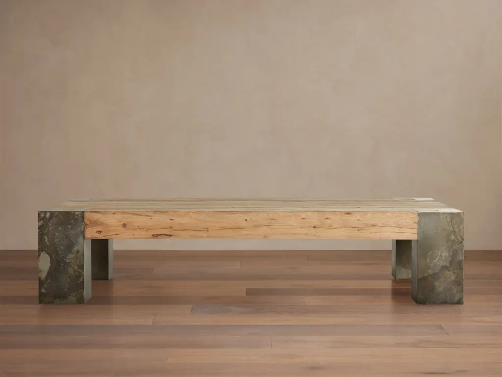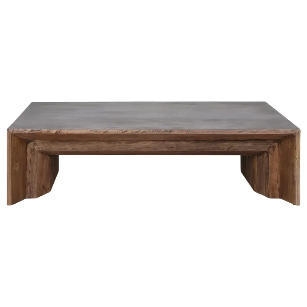 The Raimundo Coffee Table is a testament to the beauty of nature's imperfections, designed to captivate those who appreciate masculine and rustic aesthetics. This exquisite piece marries the warmth of natural reclaimed elm wood with the cool sophistication of a gray layered concrete surface. As the seasons change, the solid wood gracefully adapts, creating unique cracks and uneven surfaces that tell a story of authenticity and character. The natural concrete, with its inherent variations in texture and finish, adds an element of intrigue and depth. This coffee table is not just a piece of furniture; it's a romantic ode to the raw and unrefined beauty of nature, inviting you to embrace its evolving charm.