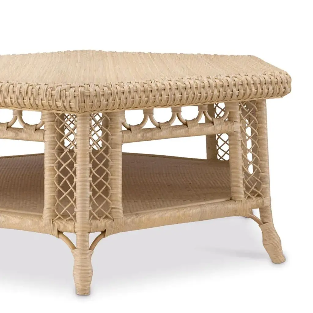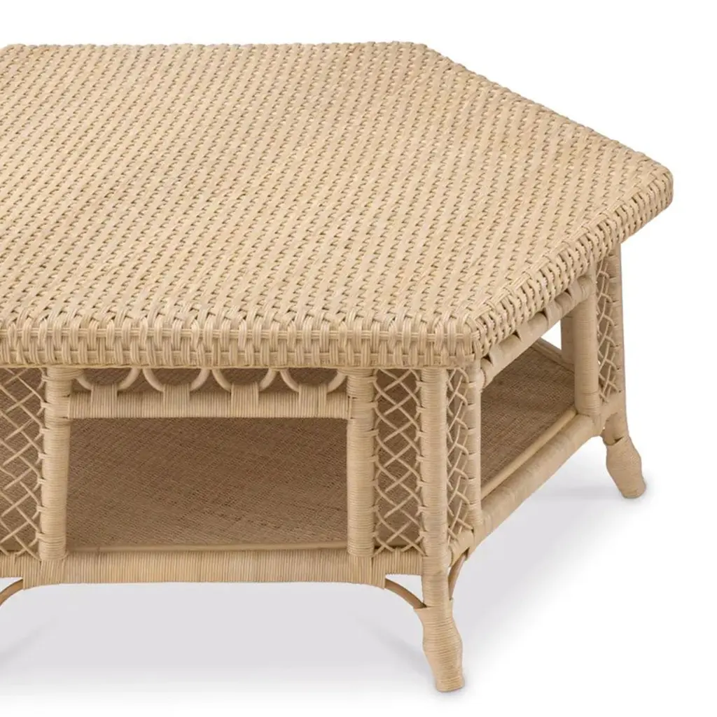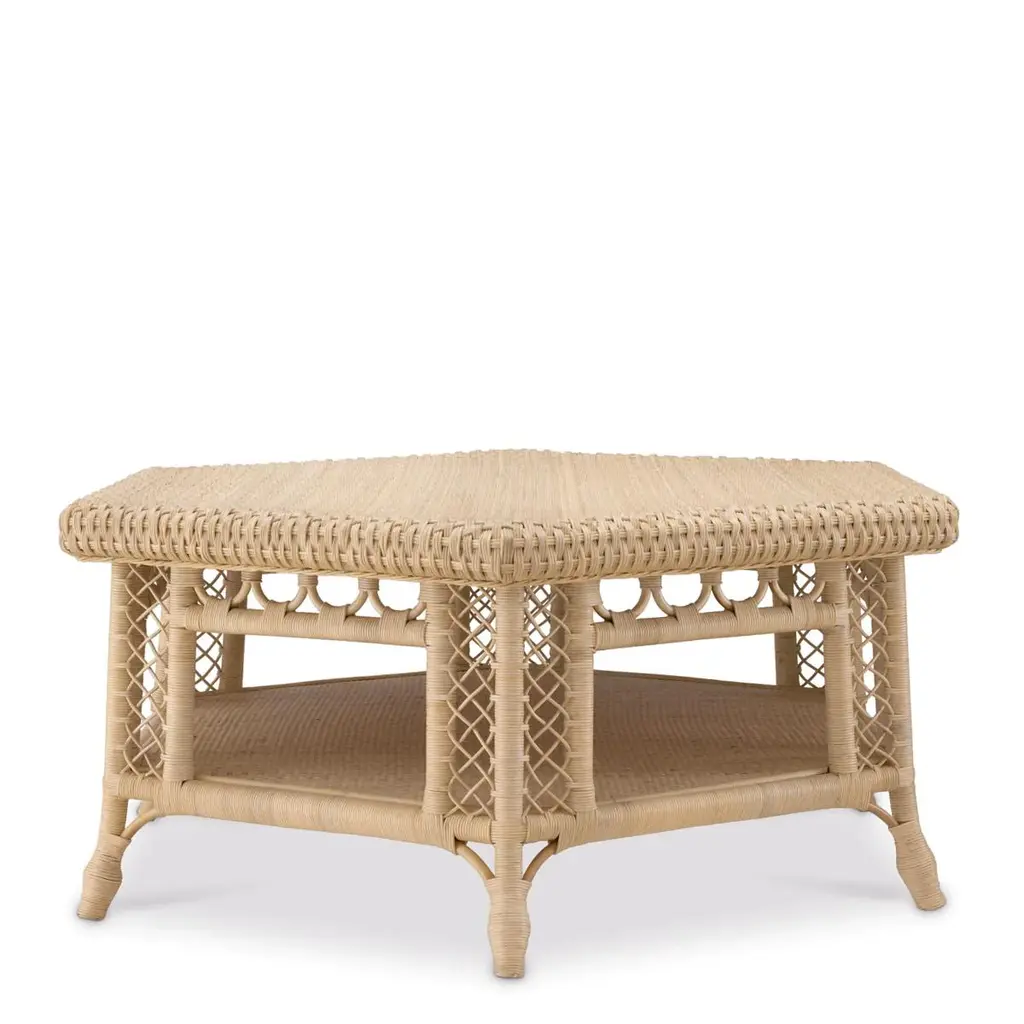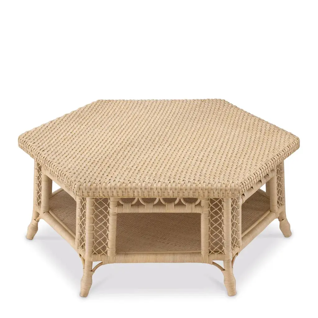 Coffee Table Hexa Rattan natural with all structure in rattan in natural finish.