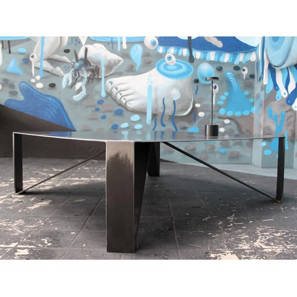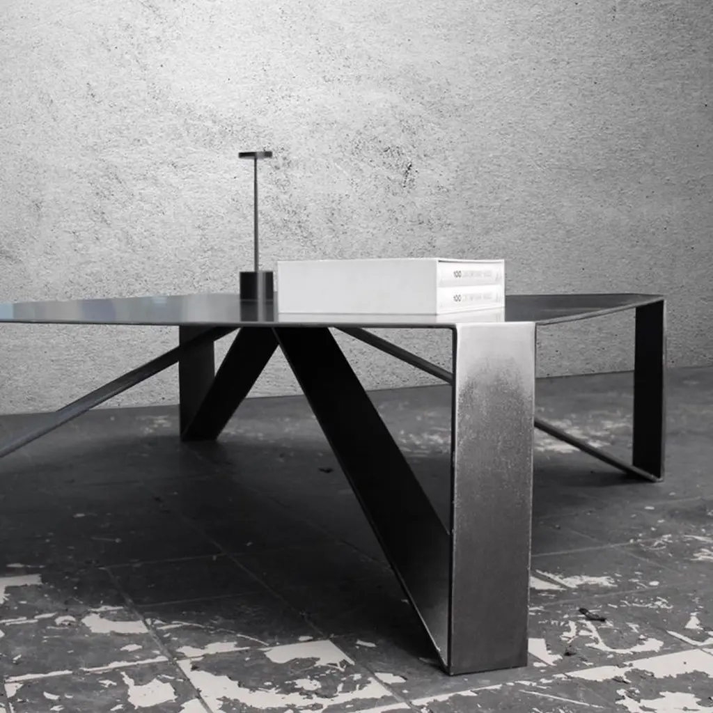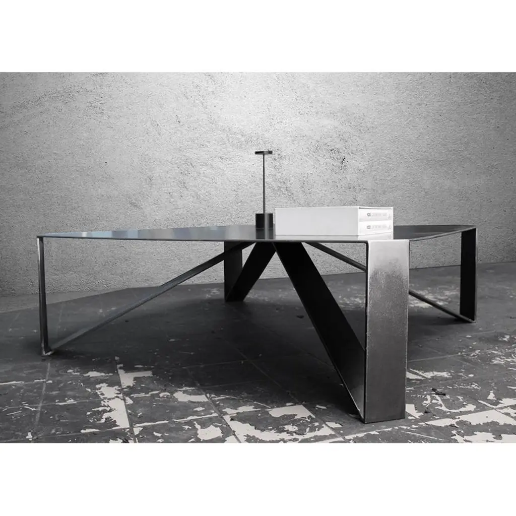 Coffee table raw angles in handcraftedsteel, in dark finish. French manufactured.