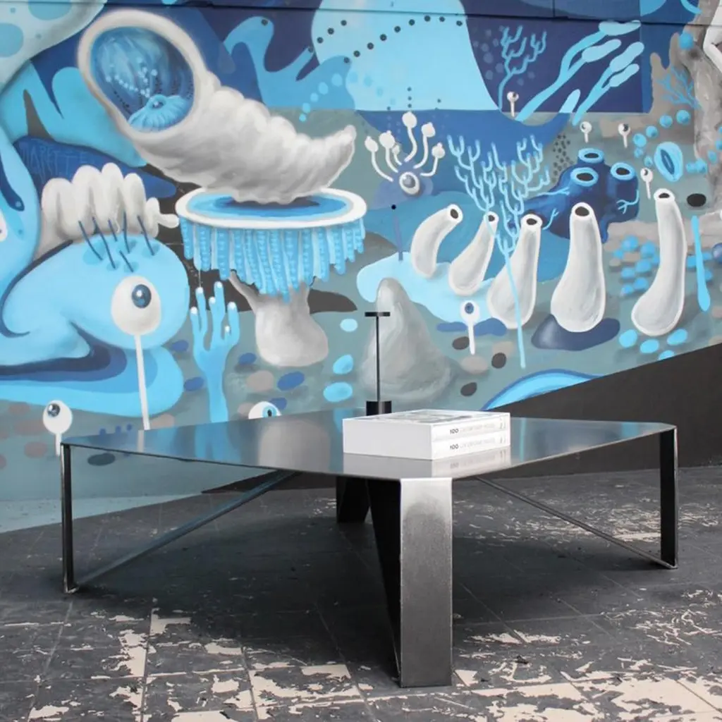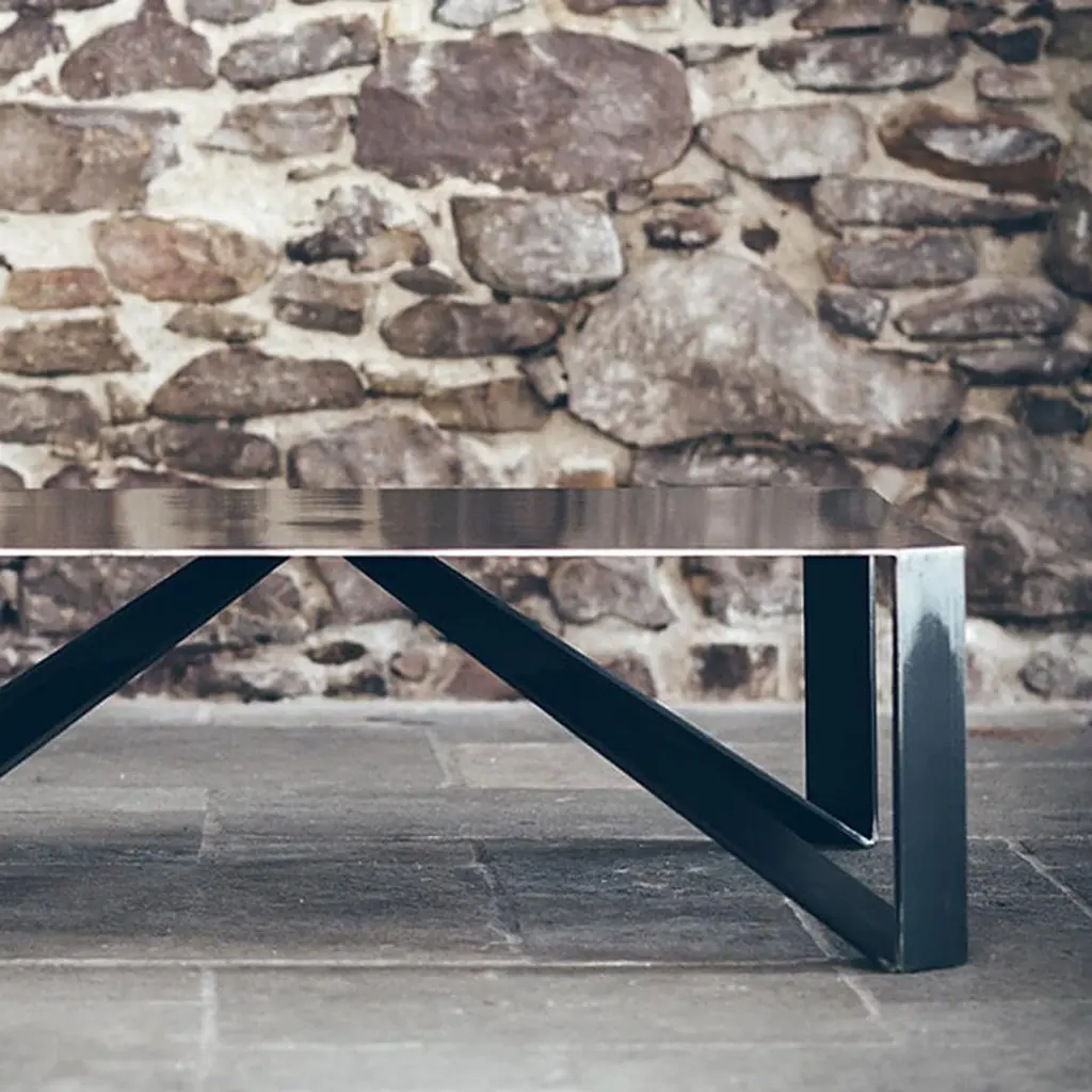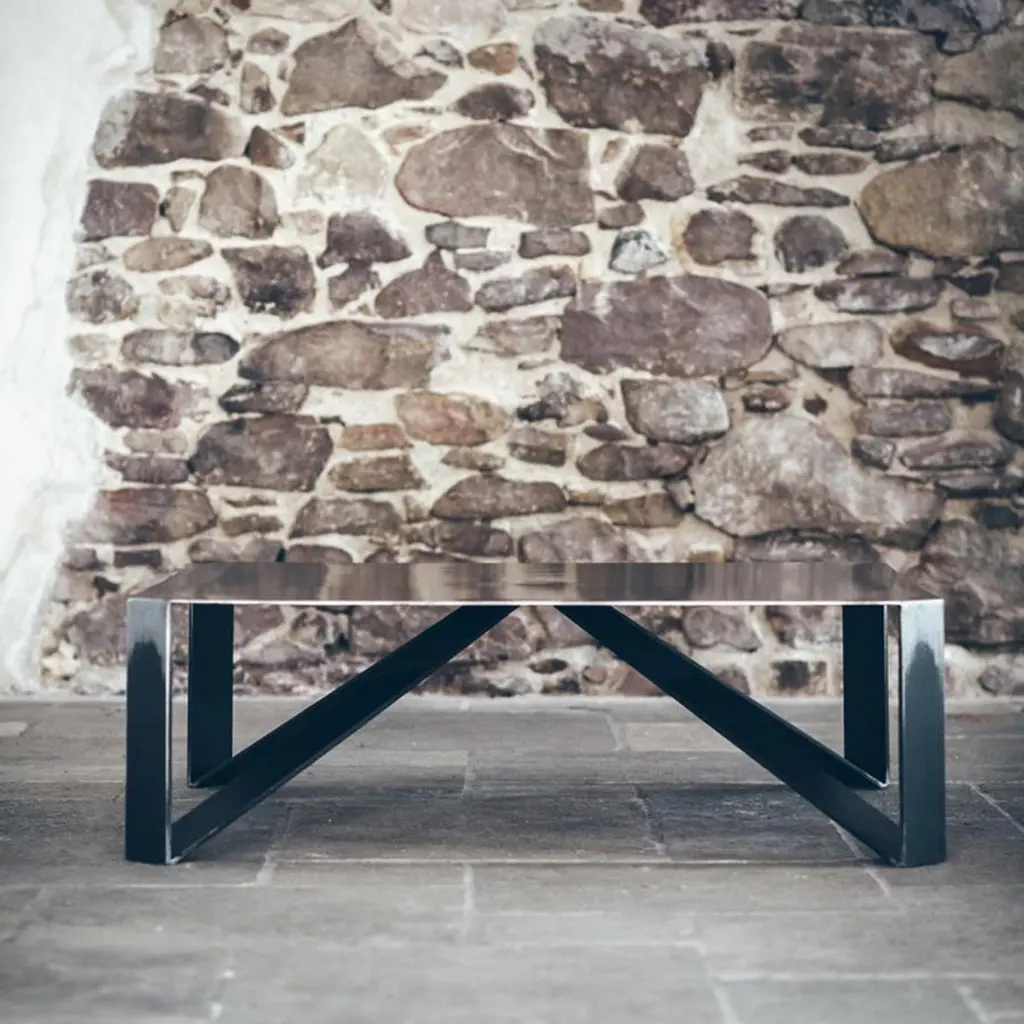 Coffee table raw angles in handcraftedsteel, in dark finish. French manufactured.