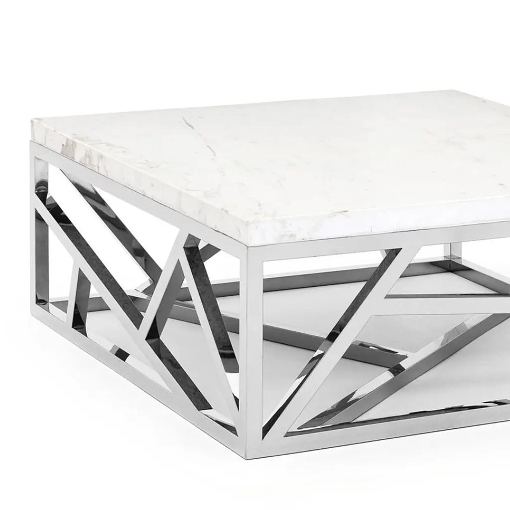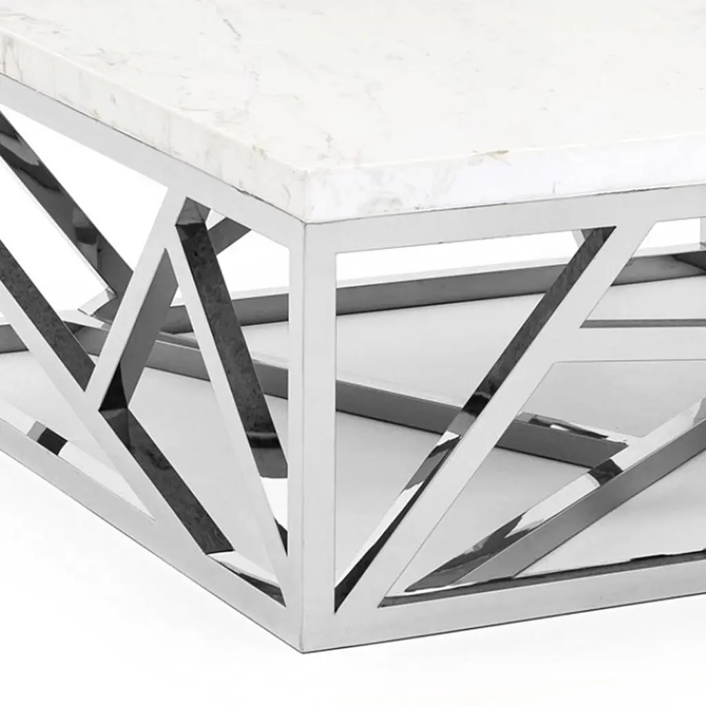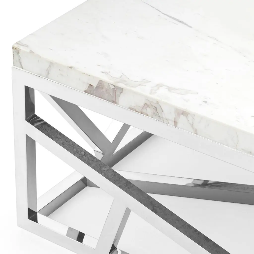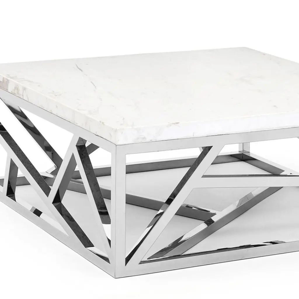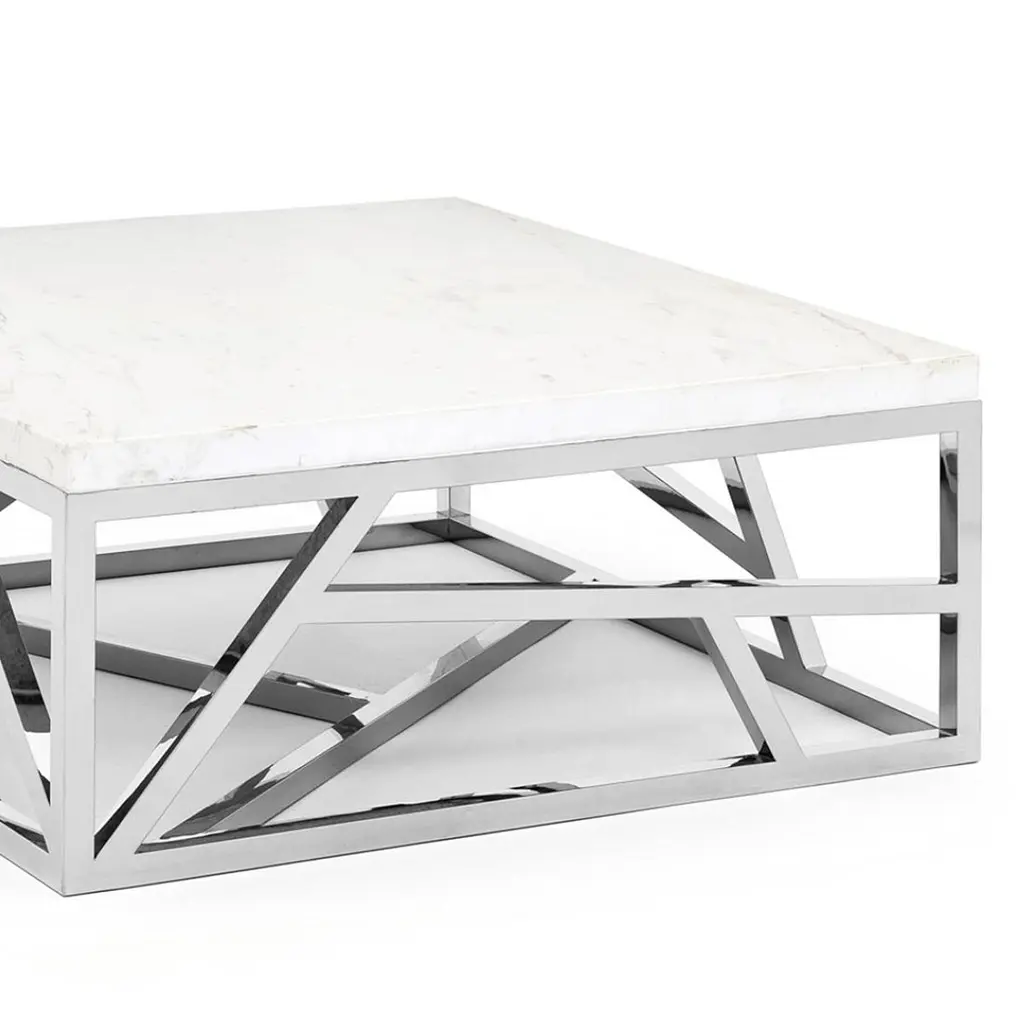 Coffee table Raytona chrome with metal basein chrome finish and with white marble top.