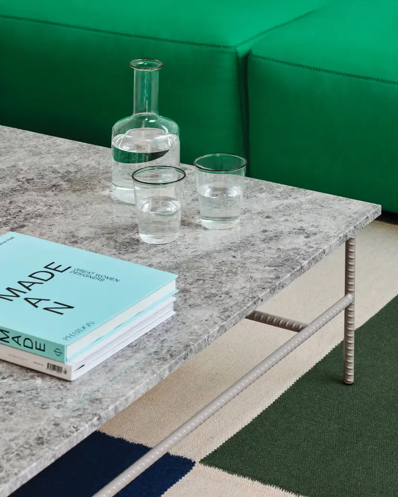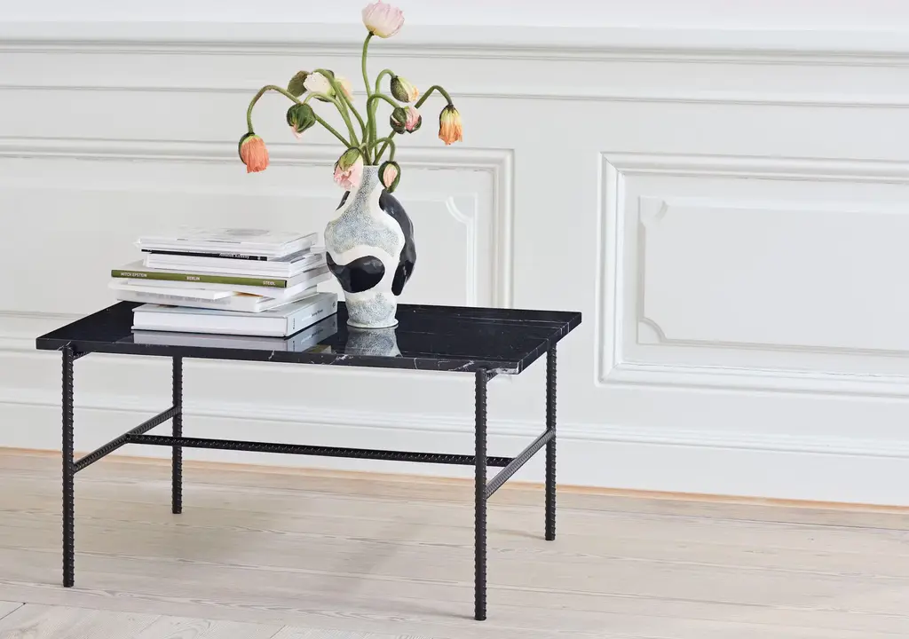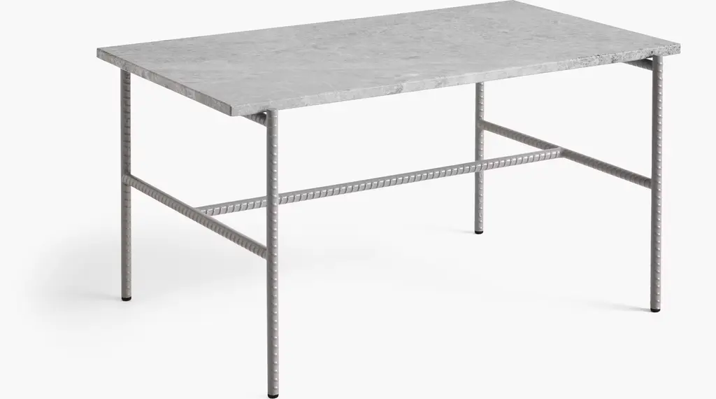 The Rebar collection explores the possibilities of re-contextualizing construction materials and processes. The Rebar marble coffee table stands out with a design that juxtaposes a reinforced steel bar frame with a marble top to create a balanced aesthetic. Made in China.