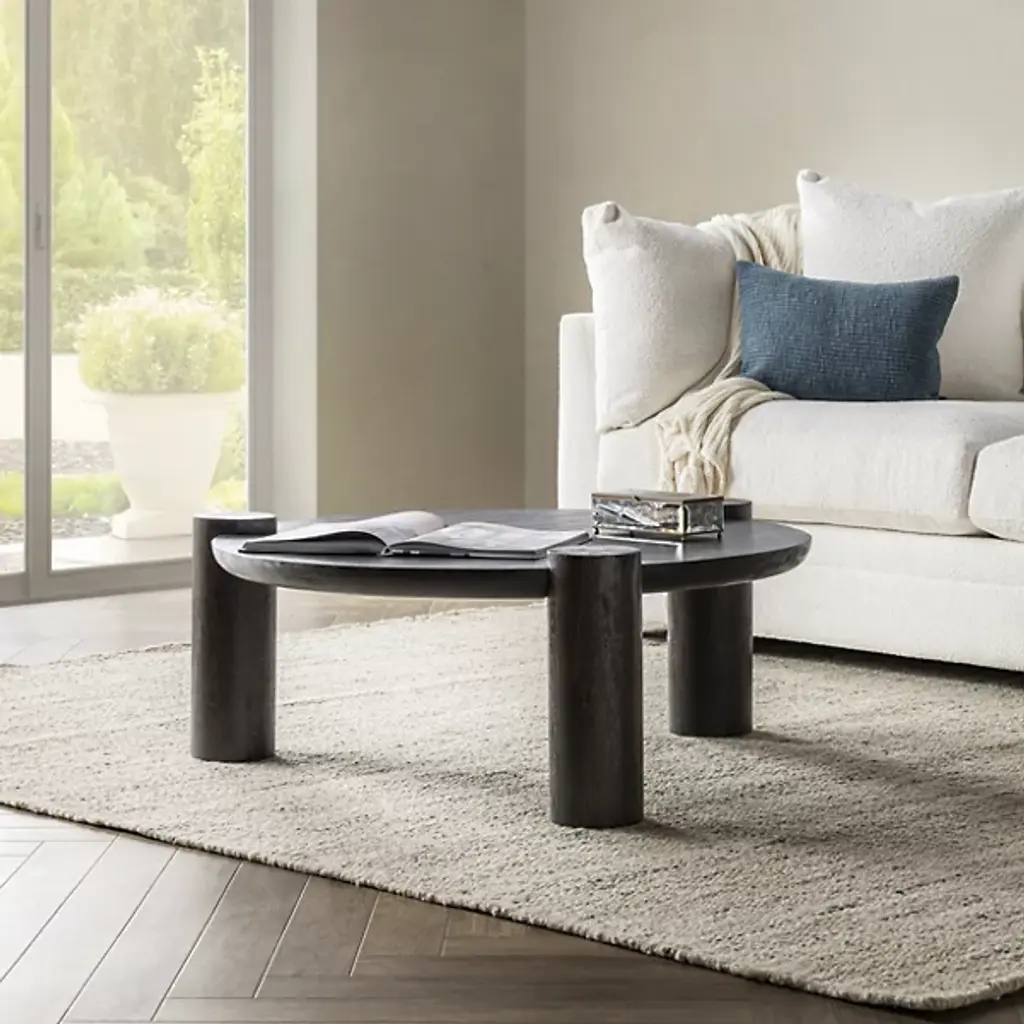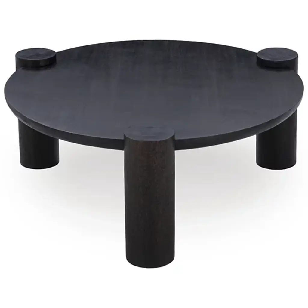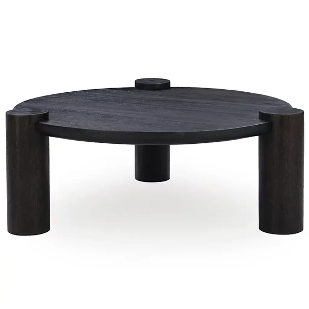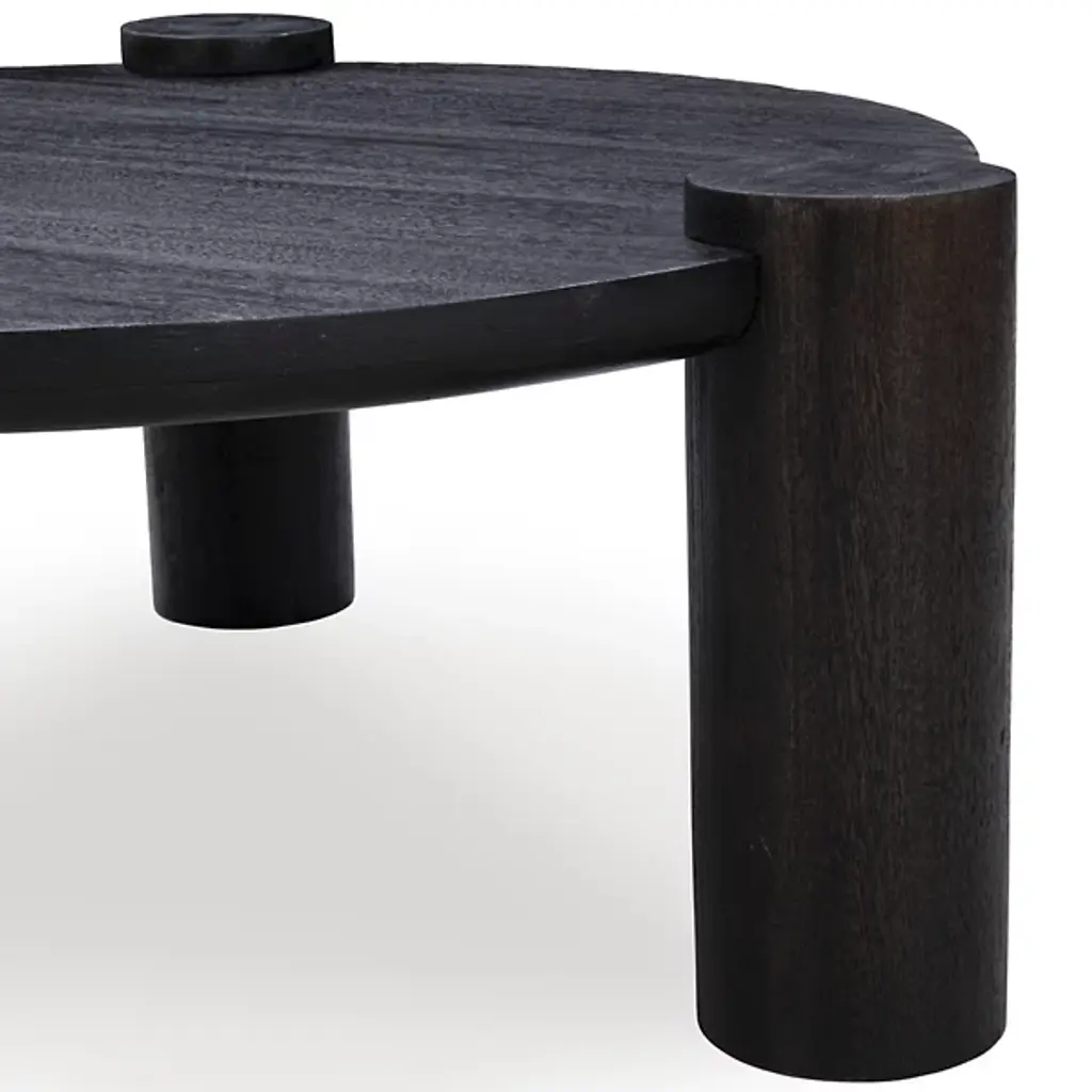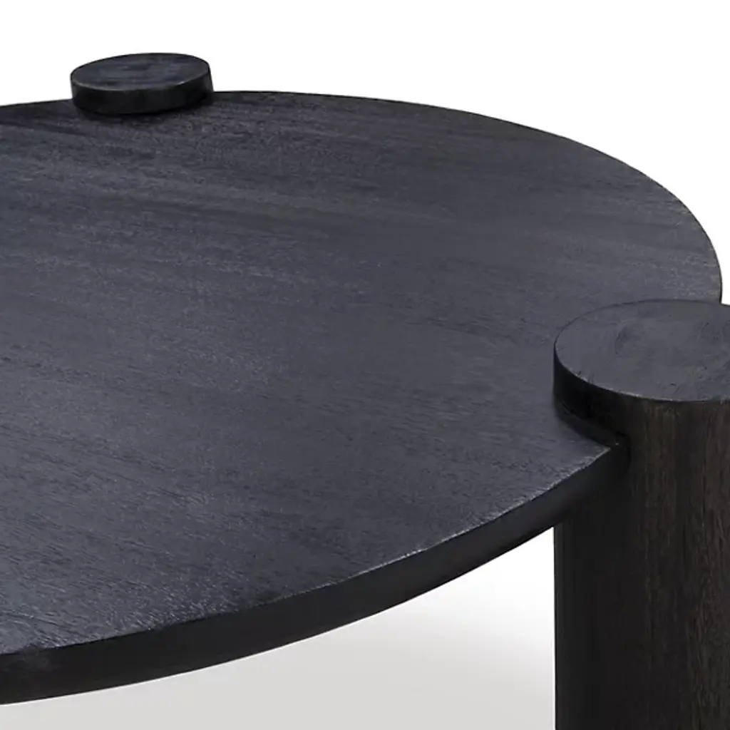 The Rebeka Coffee Table from Classic Home features sustainably sourced mango wood, finished with a hand-applied water-based semi-gloss treatment that highlights the natural grain patterns. Three gracefully curved legs stop just short of the tabletop edge, creating a floating effect that enhances its minimalist appeal. The smooth tabletop provides ample space for entertaining and decor display, while natural wood variations, including knots and color differences, make each table distinct. This coffee table works well in contemporary or bohemian interiors where sustainable materials meet modern design aesthetics.