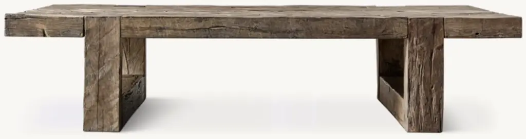 Celebrating the organic beauty of salvaged wood, our table by Theo Eichholtz is handcrafted of solid oak timbers reclaimed from decades-old buildings. The rough-hewn planks rest atop substantial supports, the design allowing the rustic character of the wood to take center stage. Each one-of-a-kind table displays the nicks, knots and imperfections that speak to the wood's former life.SHOP THE ENTIRE COLLECTION