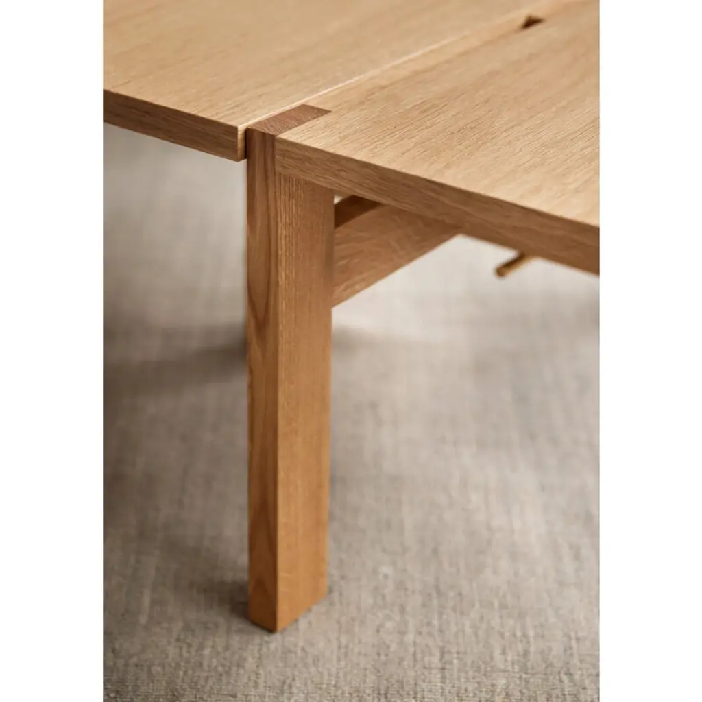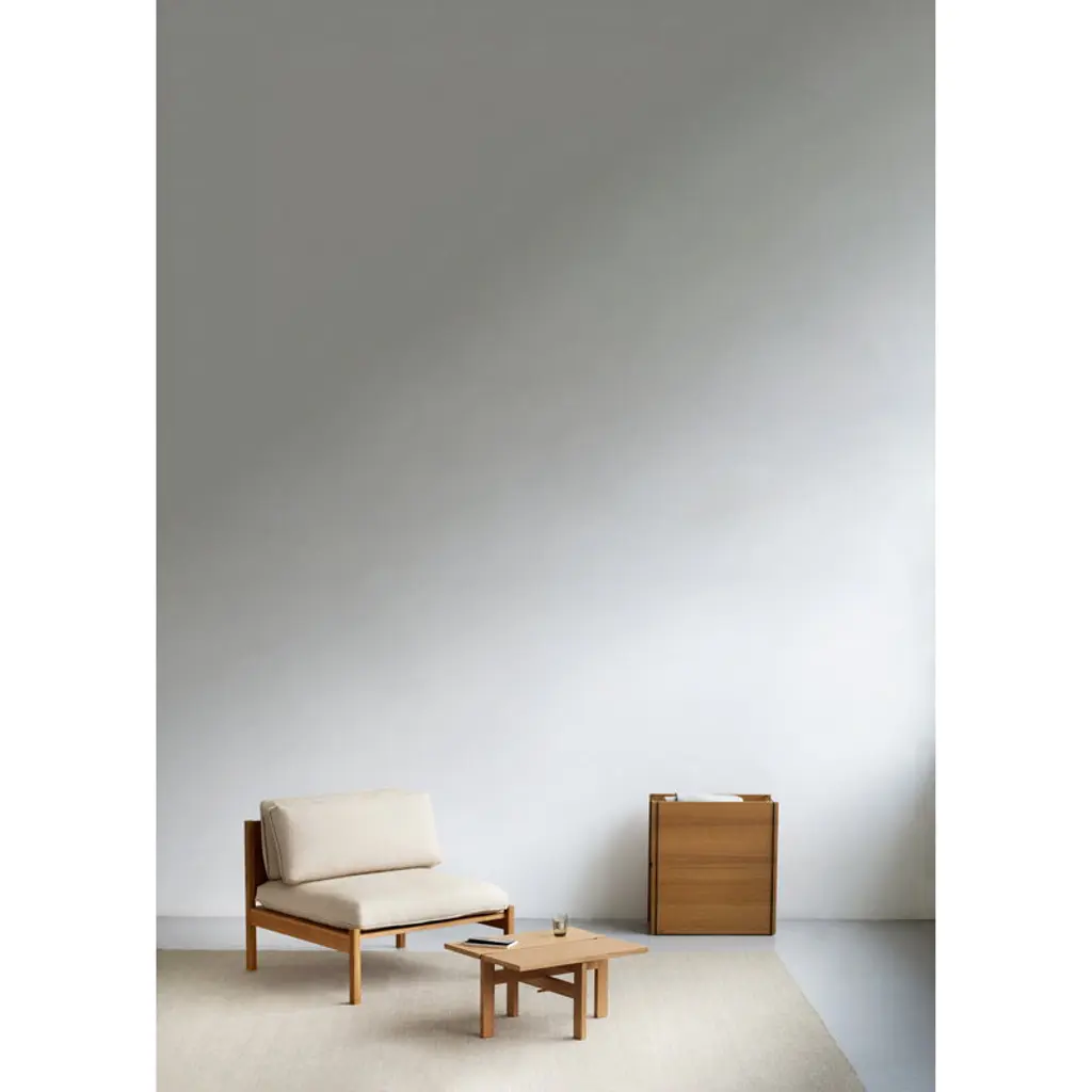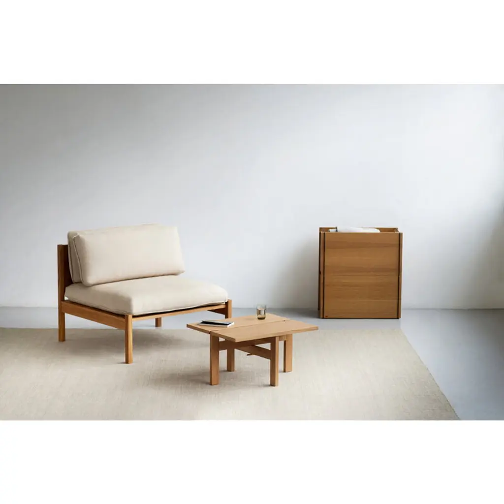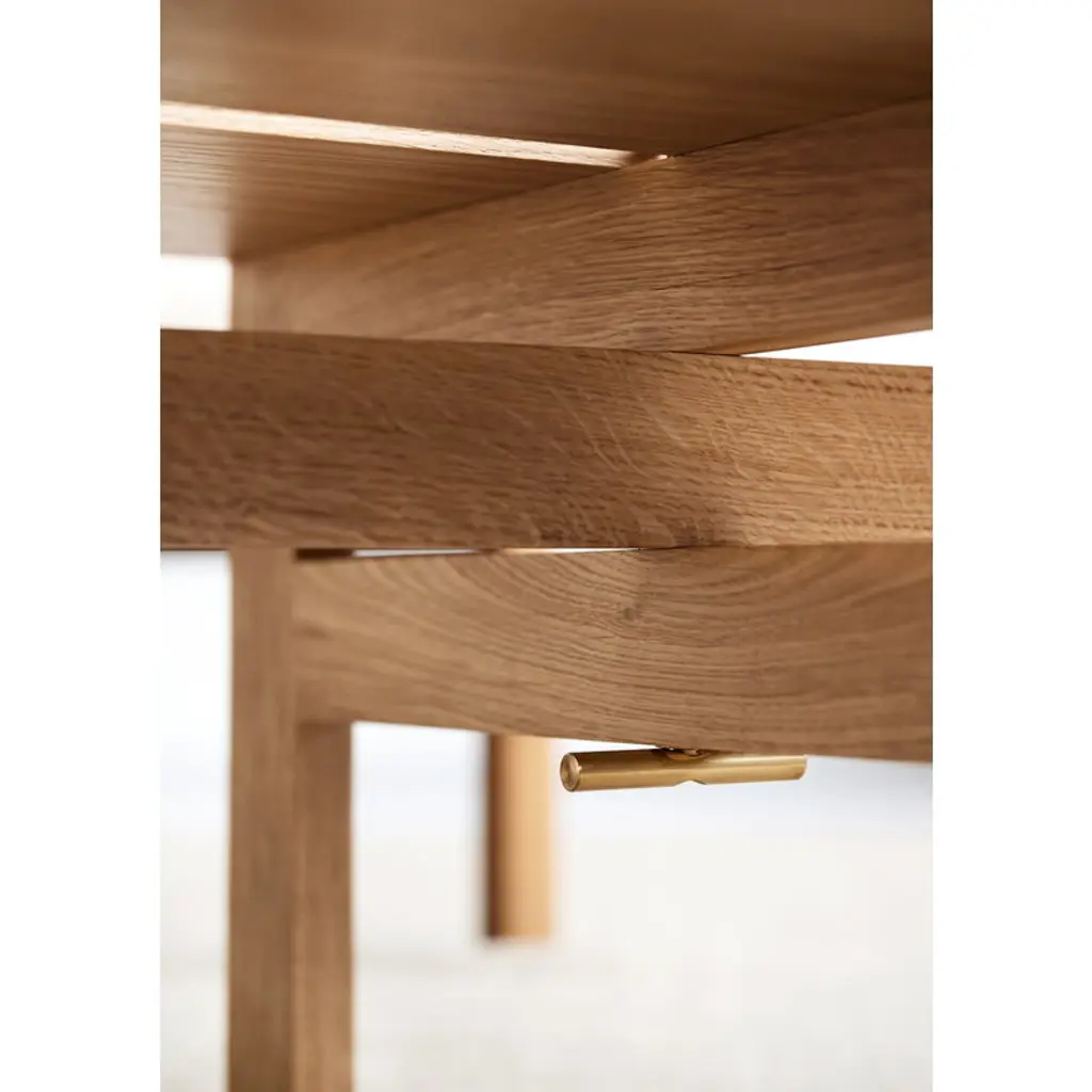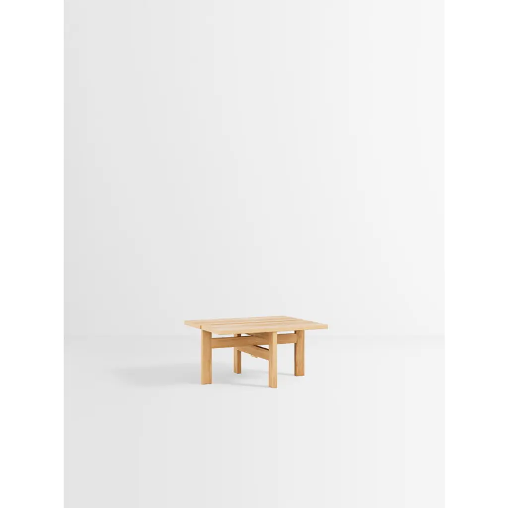 Moebe’s Rectangular coffee table is more than just a beautiful piece of oak furniture, as its intrigue is enhanced further by a distinctive structure. Beneath the minimalist tabletop, the cross-shaped leg frame’s parts meet perfectly in the middle, brought together by a brass screwing mechanism. The one-of-a-kind design gives the corners space to breathe, affording the low-profile Rectangular table an airy and light feel – and potentially even the title of the most captivating item in the living room.