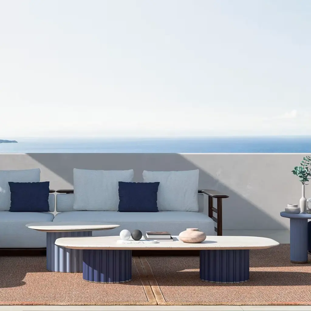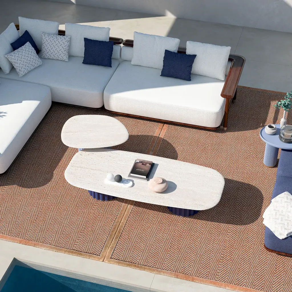 Rectangular coffee table with lacquered base. Marble top in Natural Travertino Navona.
