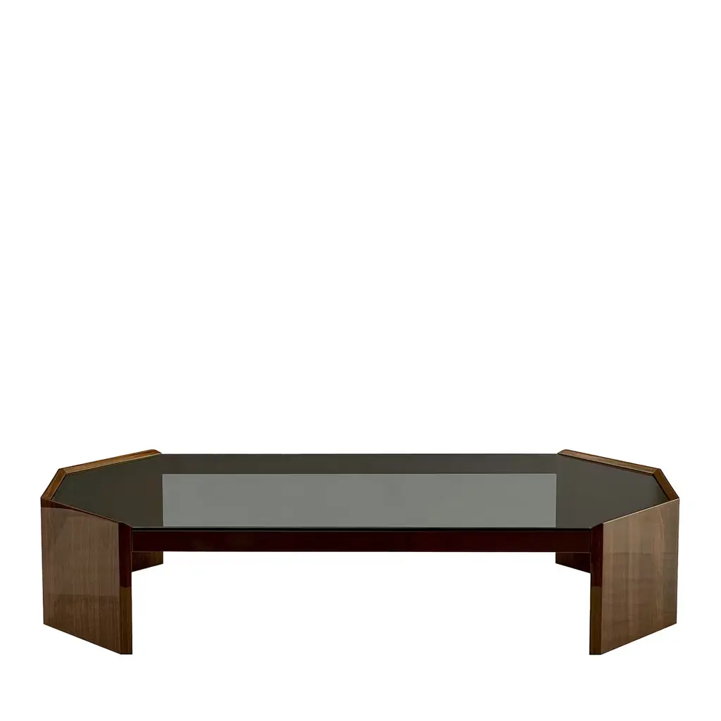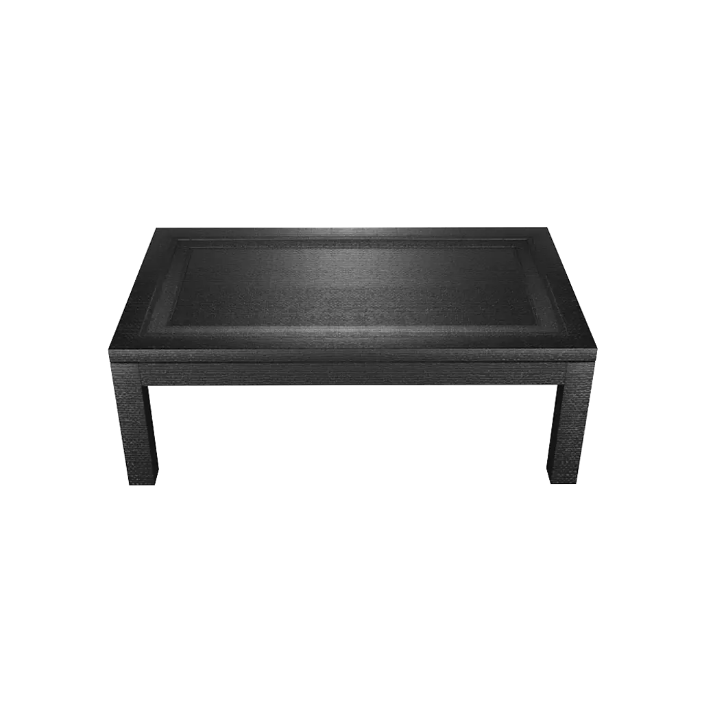 Clean and elegant lines define this exceptional coffee table designed by architect Michele Bonan for Chelini. Meticulously handcrafted of fine durmast wood finished in a picked black hue, it rests on four low yet sturdy legs completed with silver-colored brass feet and features a large rectangular top marked by a central insert also made of silver-colored brass. Customizable with initials or logos upon request, please contact the Concierge for details.