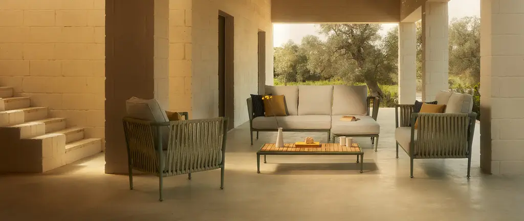 Elevate your outdoor living space with our Rectangular Teak Outdoor Coffee Table from the Unopiu Treble collection. Crafted with a bimaterial of aluminum and rope, this table offers a perfect balance of lightness and durability. Its sleek design and four finish options make it a versatile choice for any urban or residential setting.