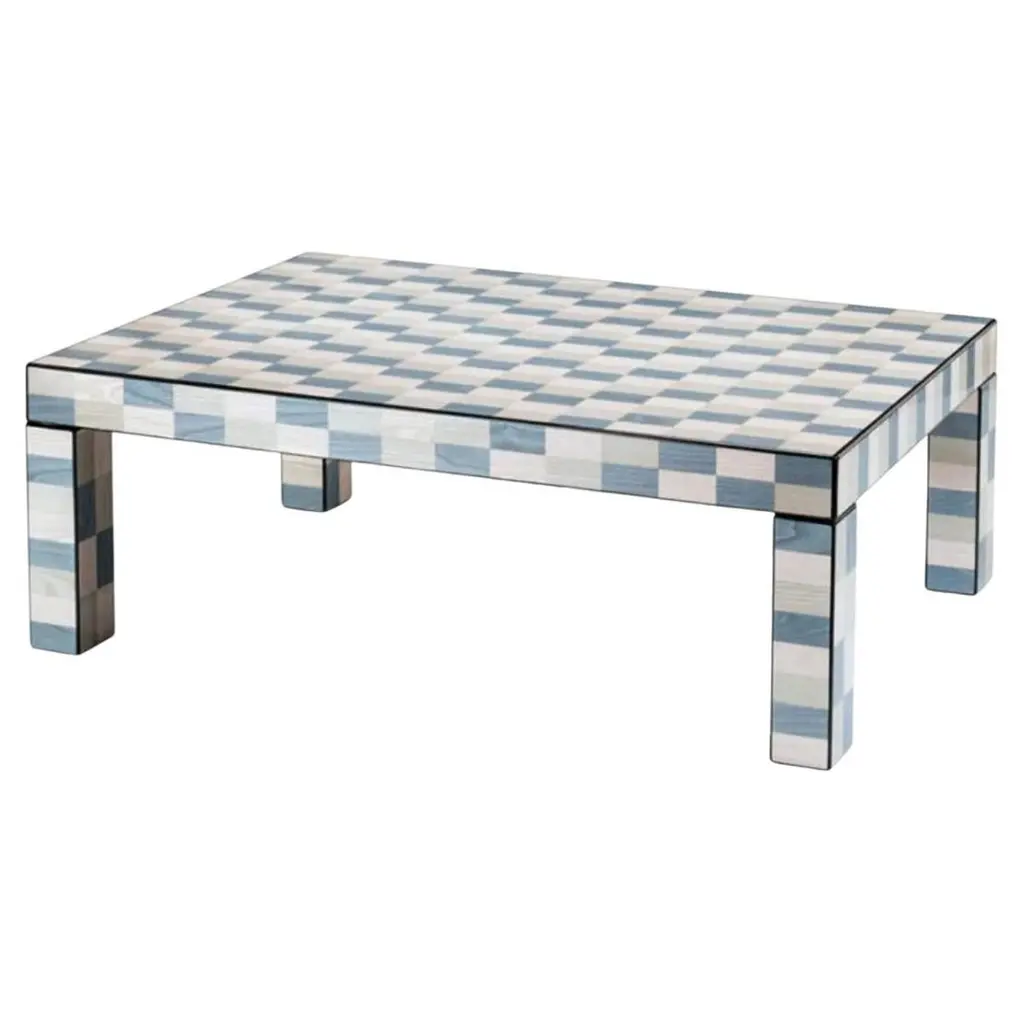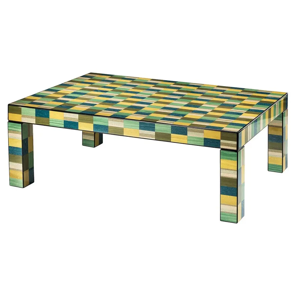 Rectangular Venezia Mestre Coffee Table by MoriciDimensions: W 120 x D 65 x H 42 cmMaterials: Wood, inlay veneer.Finish : Gloss brushed polyester. Let yourself be captivated by the style and elegance of the Morici Collection furniture line. A truly unique concept that enhances and makes living spaces even more functional. Refined design, expert craftsmanship, and top-quality finishes create captivating and impactful furniture, where every detail is meticulously crafted.This coffee table, a contemporary and sculptural art object that embodies conviviality, will enliven any residential or commercial space. Crafted entirely of wood, it features a stunning inlay work composed of a captivating array of modern-inspired colored rectangles, polished and brushed for a bold finishing touch.About:Driven by a passion for craftsmanship, Luciano Morici and his wife Doriana Marconi launched their business in the late 1970s. Their collaborations with leading local companies quickly blossomed, designing and producing wood and leather accessories renowned for their meticulous attention to detail. Over time, the small artisan workshop, thanks to the value of its products, has transformed into a company with a fundamental artisanal vocation.Their products are the result of the finest Italian artisan tradition in wood and leather working. The company maintains strong ties to the splendid Marche region, renowned for its art and culture, beautiful landscapes, and a deeply rooted entrepreneurial spirit recognized internationally.