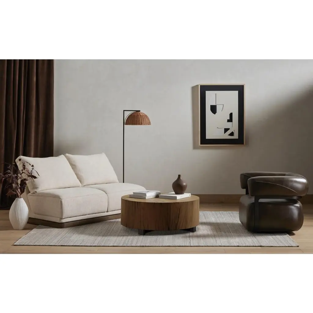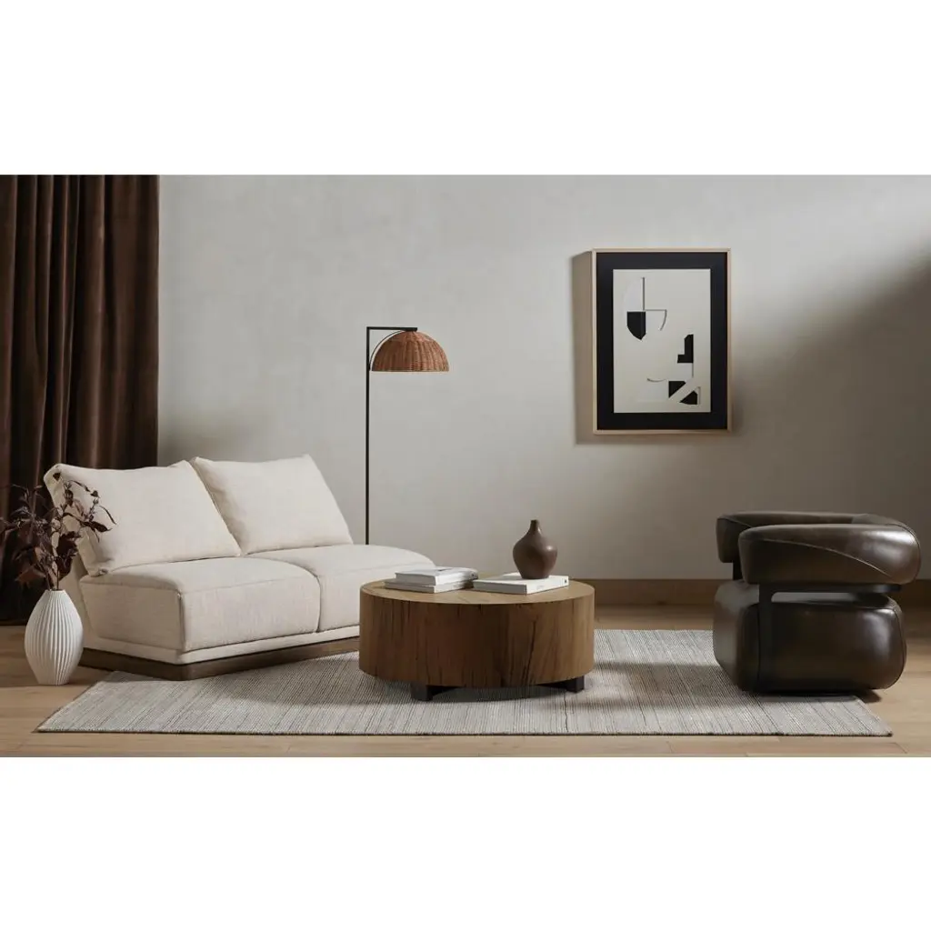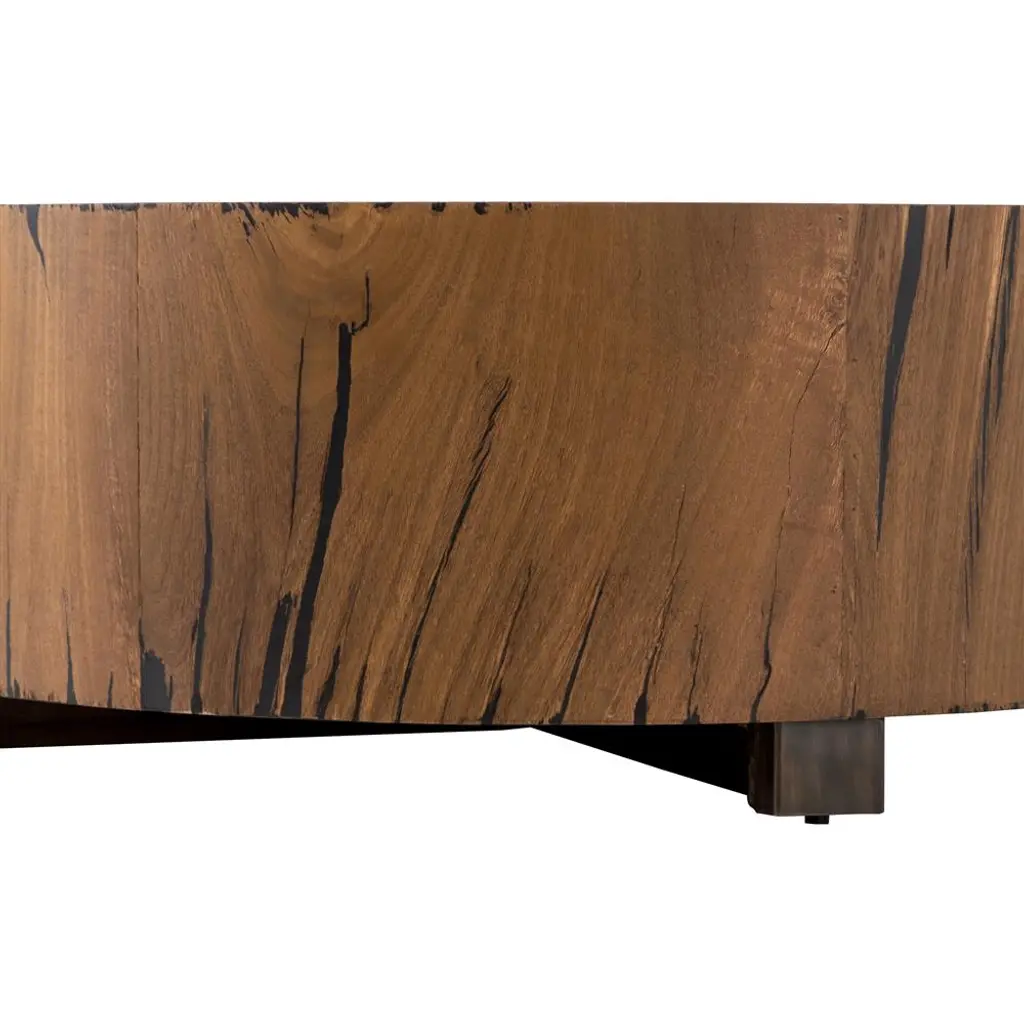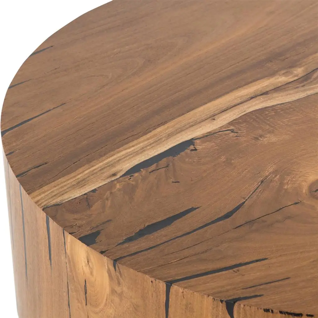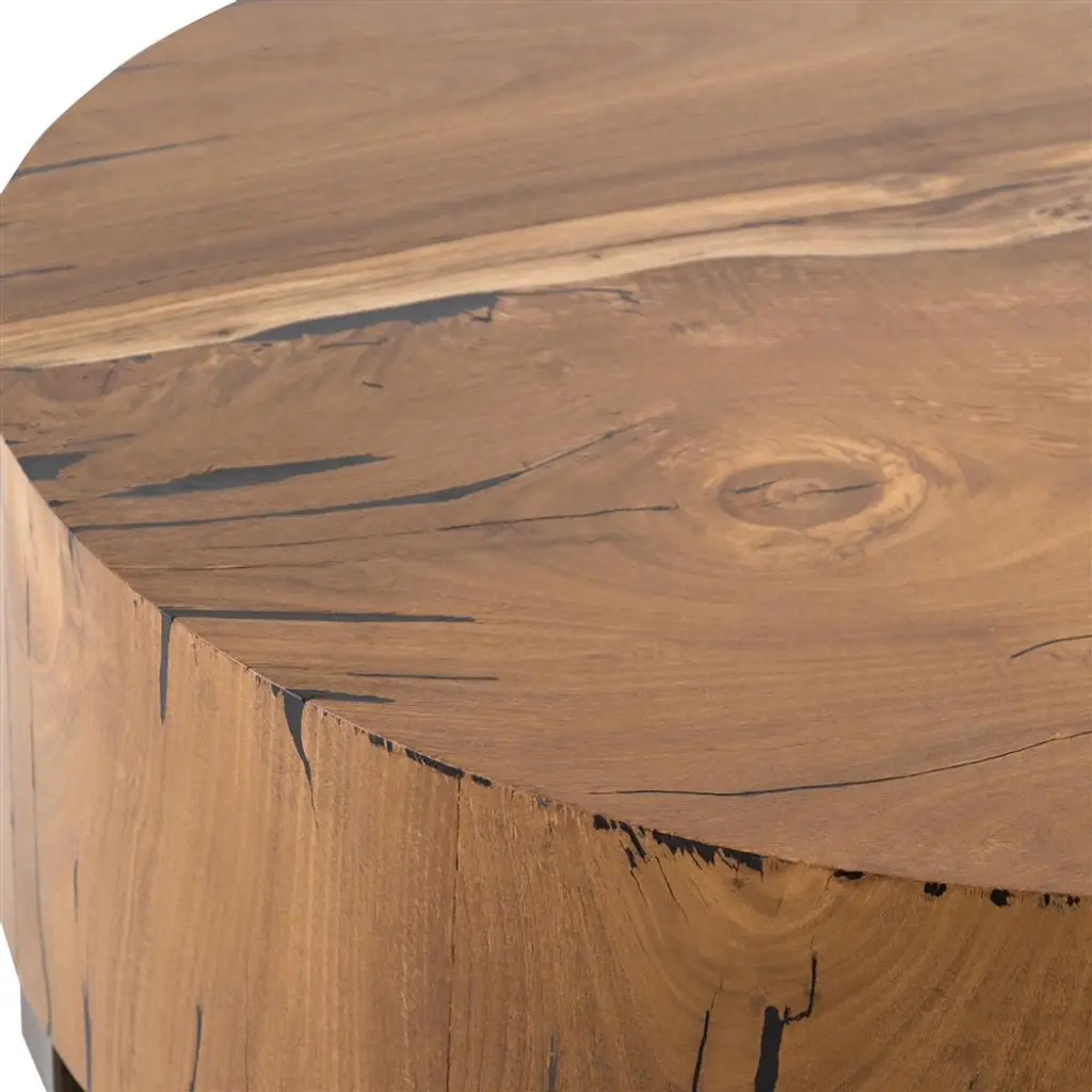 Redding Rustic Lodge Dark Brown Pine Wood Round Drum Coffee Table