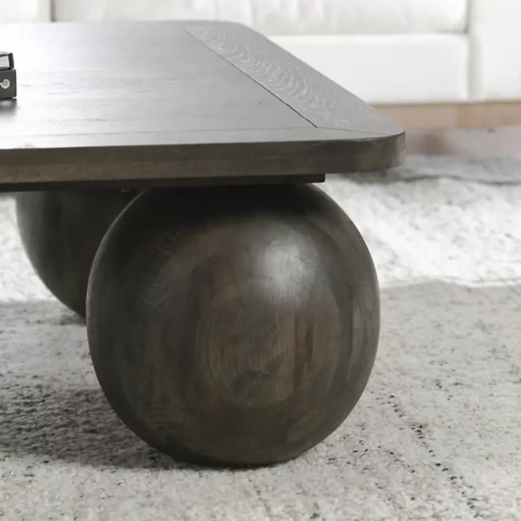 The Redondo Square Coffee Table from Classic Home merges sculptural artistry with sustainable craftsmanship, featuring distinctive spherical legs and a robust construction. The expansive square top showcases the natural beauty of blended wood grains, creating a striking centerpiece. Supported by four ball-shaped legs, this Redondo Square Coffee Table demonstrates exceptional stability while maintaining its artistic appeal. The thoughtful combination of responsibly sourced oak and mango wood reflects a commitment to the environment while ensuring lasting durability.