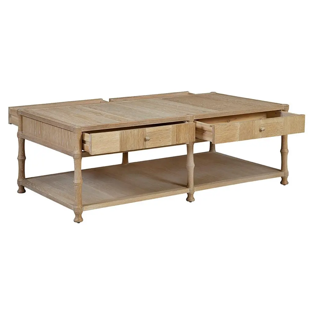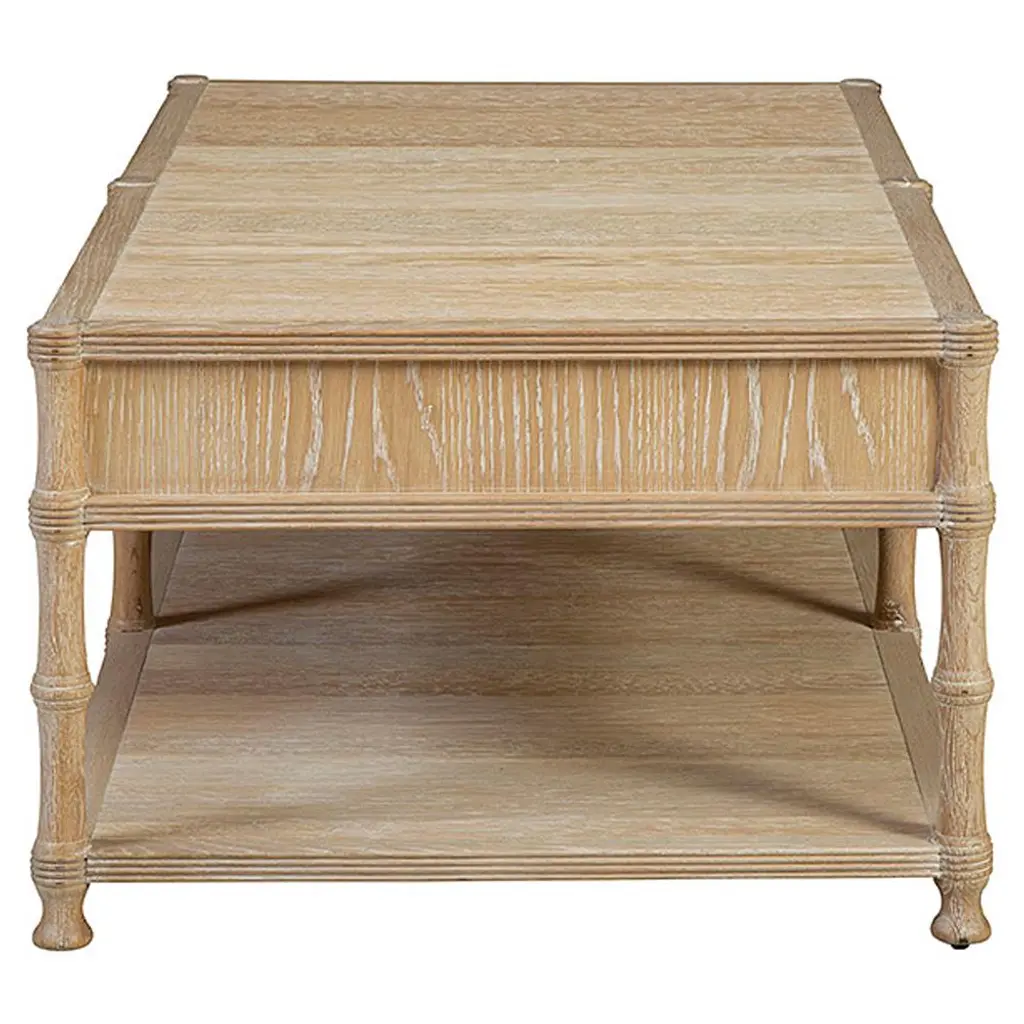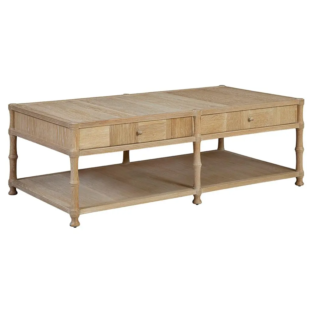 Reed Coastal Beach Brown Oak Rectangular Storage Coffee Table