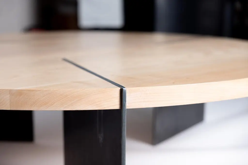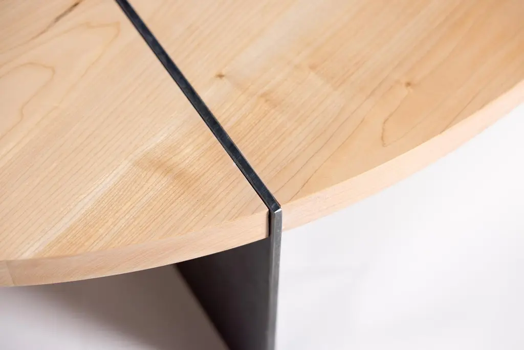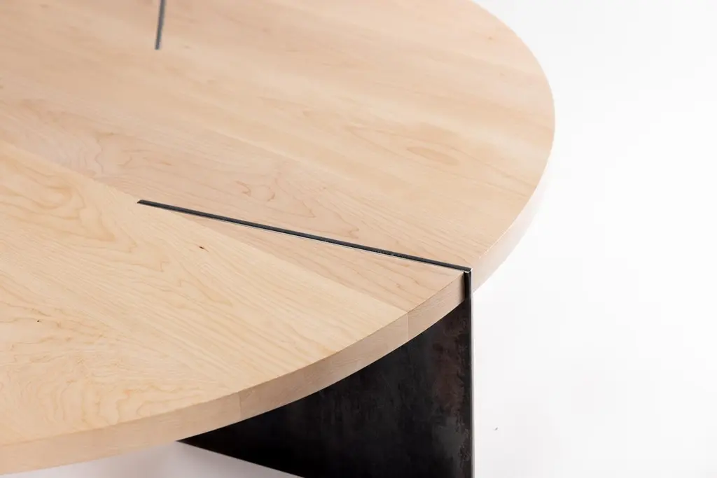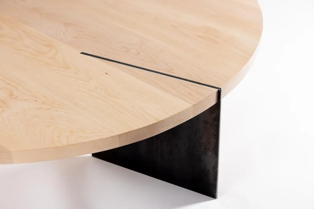 Reina Round Coffee Table In Maple Wood And Steel By Autonomous Furniture