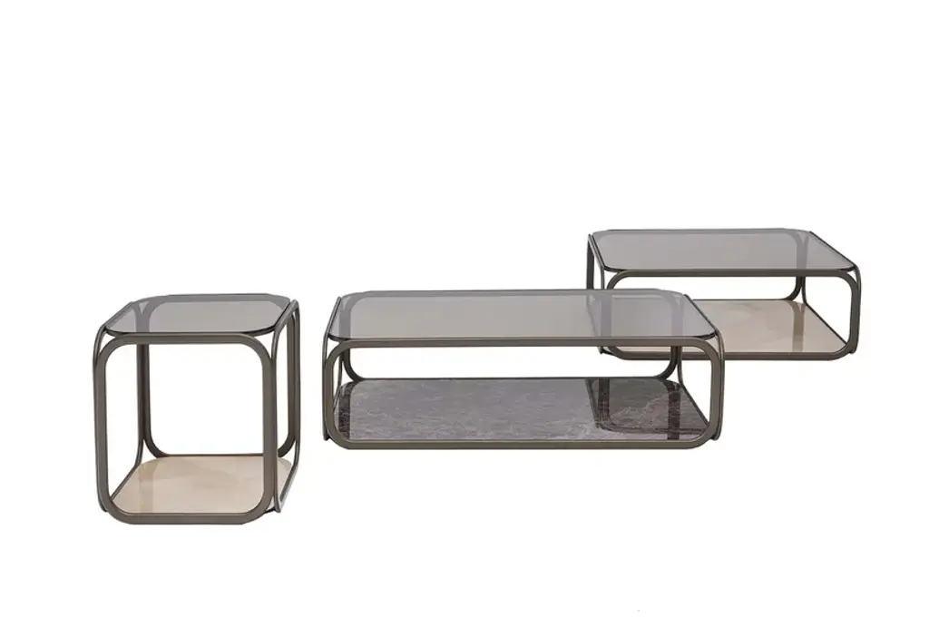 Remembering the 60s, the Remind collection is born, made with a curved metal frame skilfully combined with bronzed glass and the best porcelain stoneware finishes.