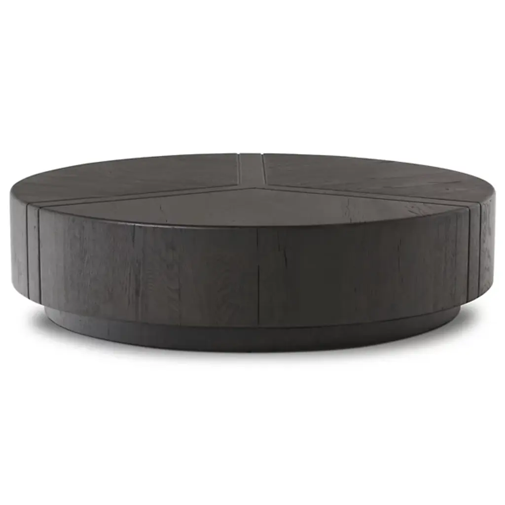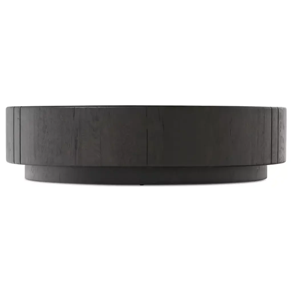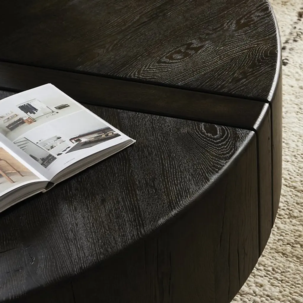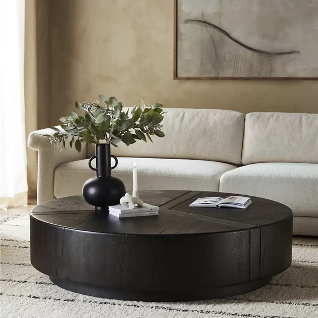 The Renan Coffee Table from Four Hands stands as a testament to a fusion of rustic modern and contemporary design. A collaborative creation by Thomas Bina and Ronald Sasson, it’s crafted from solid reclaimed oak; this round coffee table perches atop an inset plinth-style base and is finished in a rich espresso hue. The thoughtful design incorporates an inset trefoil pattern, adding a touch of intrigue to the structure, which is made in Vietnam and serves as a captivating centerpiece for any space.