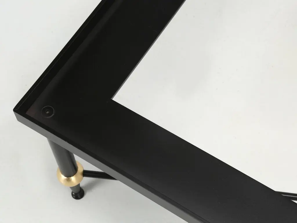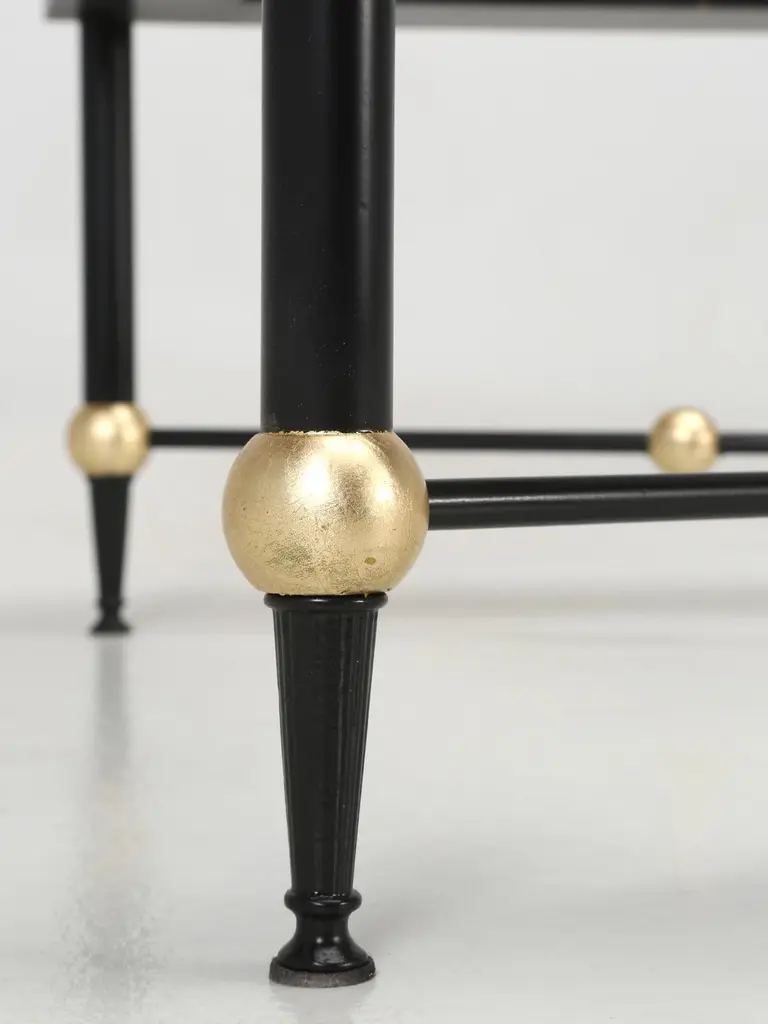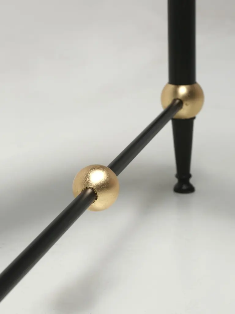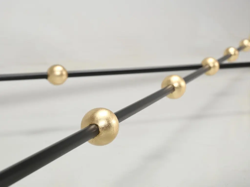 René Prou 1889–1947 Inspired Custom Hand-Made Steel Coffee Table with Gilded Spheres made to order by Old Plank in Chicago and available in virtually any dimension or finish. Rene Prou Finished his training as a decorator from the École Bernard-Palissy in Paris. René Prou would become the workshop director for the interior decoration company Maison Gouffé. In 1921 René Proudesigned his first ocean liner decoration commission for the Paris; followed by the Île-de-France in 1927, the Atlantique in 1931 and the Normandie in 1935. By1928 he succeeded Paul Follot as head of the Ateliers Pomone, the Bon Marchédepartment store workshop. In the 1930s René Prou designed the dining room for the Waldorf Astoria in New York City. When exactly he designed this CoffeeTable is difficult to determine, but the classic René Prou design has never gone out of style.