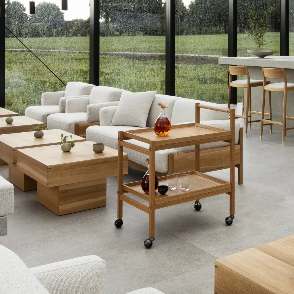 Employing Scandinavian design principles and serene natural materials, Norm Architects bridges East and West in a strikingly substantial wooden coffee table for Japanese maker Karimoku Case. Designed initially for Michelin-starred Swedish restaurant Äng, N-CT02’s strictly crafted proportions offer an understated modularity, standing alone as a plinth-like object or used in multiples for larger spaces.