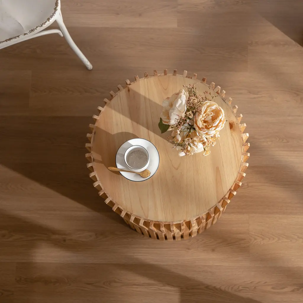 Retro Fashion Style Cylindrical Mdf Coffee Table With Vertical Texture Relief Design, Suitable For Living Room, Office And Dining Room - Brown