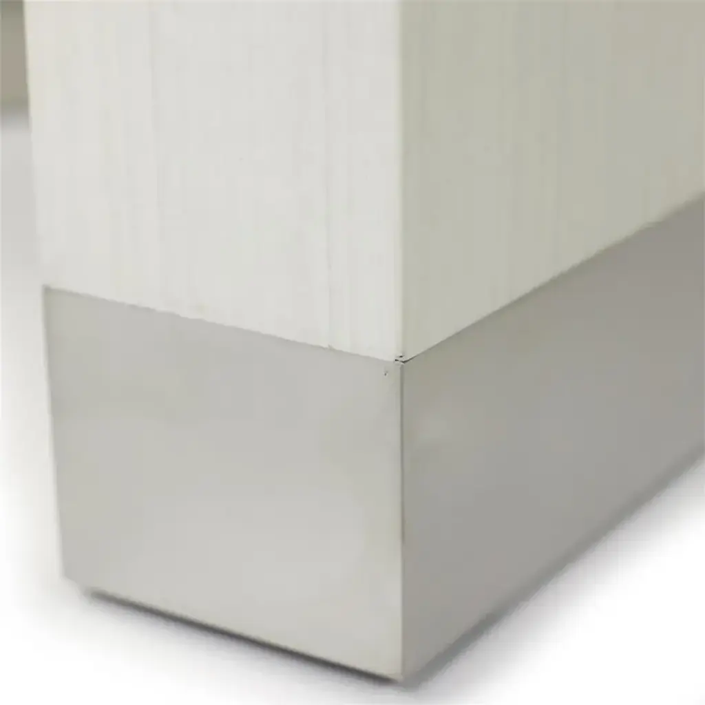 The Revolve Cocktail Table is a gorgeous statement piece that instills any décor with a rich sense of depth. Crafted from eucalyptus wood in a Terra White finish, the circular table displays stunning straight wood grain that converges at the center. The piece is supported by several slender, square legs capped with Polished Stainless Steel accents, contributing subtle opulence to pristine white tones.