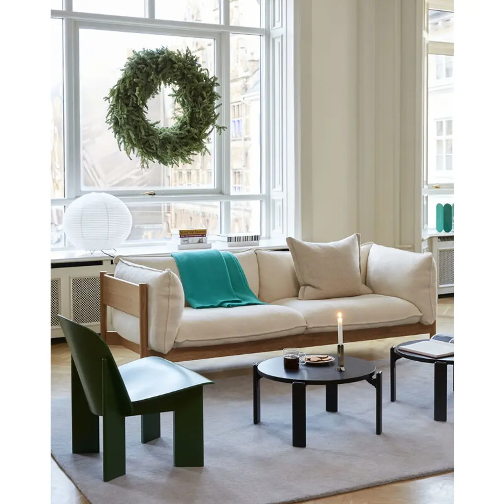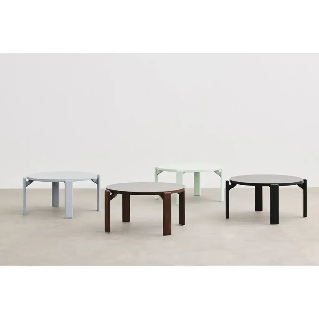 HAY's Rey coffee table draws inspiration from the iconic chair designed by Bruno Rey in 1971. The classic collection, re-invented and re-released in collaboration with the original manufacturer, Swiss Dietiker, charms with its softly rounded lines and simple but detailed design. The timeless appeal of the Rey coffee table makes it an impressive addition to all spaces, private and public alike. In the Rey collection, the wooden legs and the tabletop finished with beech veneer are combined in an innovative way thanks to the die-cast aluminum brackets. The unique mechanism also gives the table its distinctive look: the tabletop looks almost as if it is floating, perfecting the robust design with an irresistibly attractive lightness.