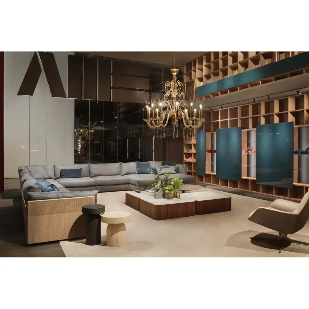 The Ribbed Wood Marble Coffee Table by Lema Drum is distinguished by its unique structure in ribbed wood, worked in solid walnut. Available both in the round and oval versions as in the square version with rounded corners, Drum is a playful game of function and form. The top of the coffee table can be customized with the top back painted glass, stone, or marble, in all the variants of the collection. From the namesake collection of coffee tables, the Drum pouf is born, with the same structure in wood, where a soft cushion upholstered in textile or leather is added.