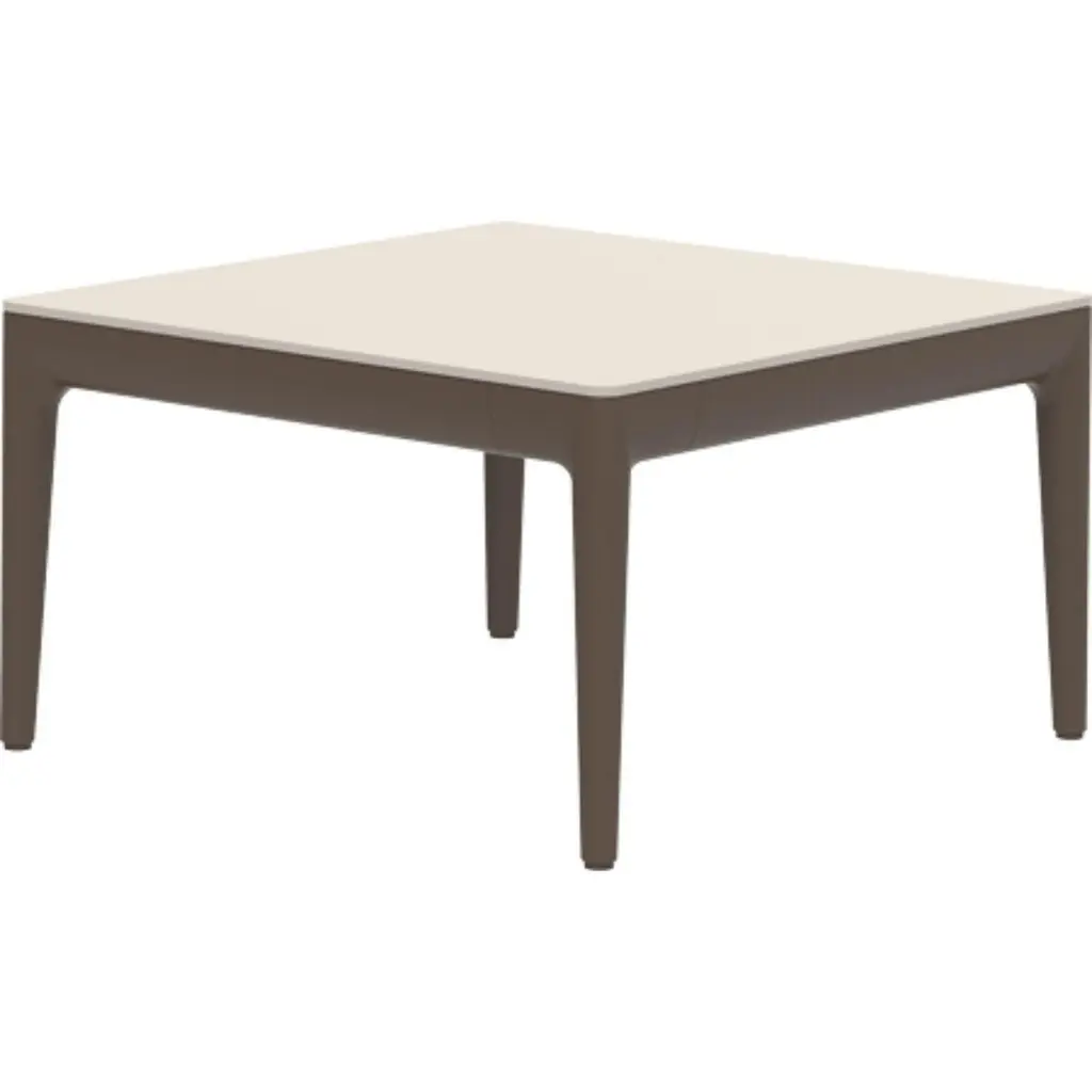 Ribbons Bronze coffee table 50 by MOWEEDimensions: D50 x W50 x H29 cmMaterial: Aluminum and HPL top.Weight: 8 kg.Also available in different colors and finishes. (HPL Black Edge or Neolith top). An unmistakable collection for its beauty and robustness. A tribute to the Valencian manufacturing tradition as a challenge to innovation, making it sustainable and durable. A collection with details that make it unique. We discover its most representative side, Ribbons. Engineering and tradition come together, thus achieving a collection with its own character.Möwee is part of the work, effort and commitment of Gaviota, a leading company in the outdoor sector. It was set up as an independent venture to broaden horizons in the outdoor furniture world, with its own distinctive character and way of doing things. Freshness, simplicity, quality and design are at the heart of its DNA.