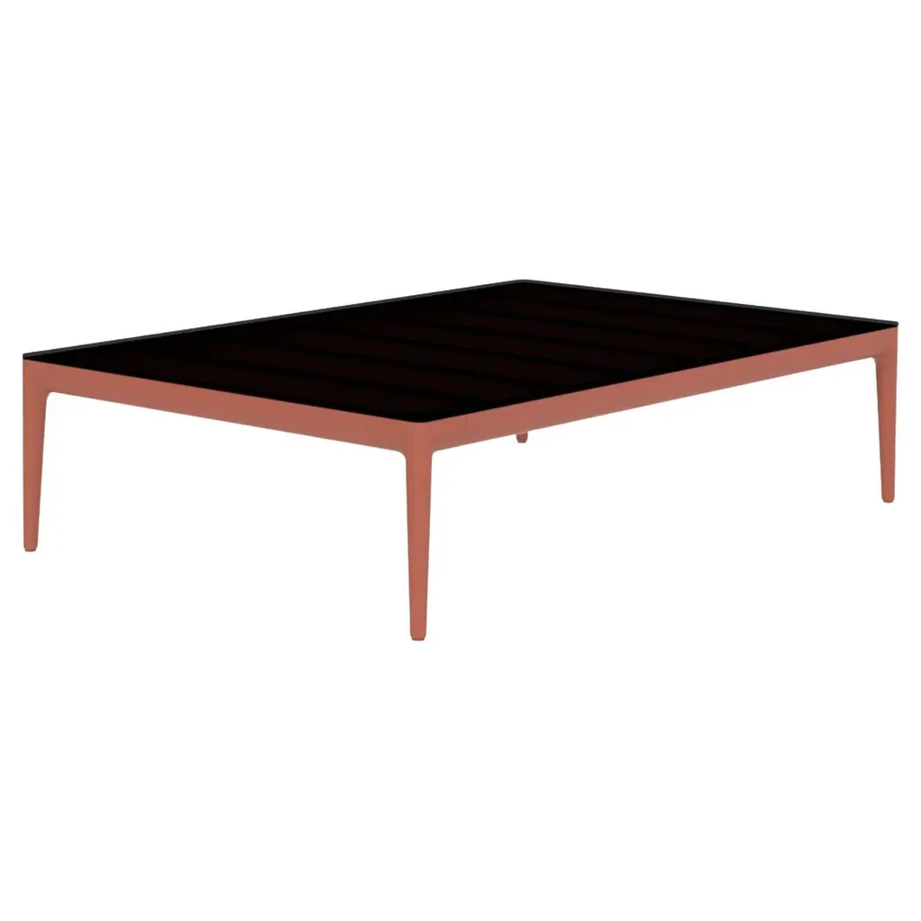Ribbons Salmon 76 coffee table by MOWEEDimensions: D76 x W76 x H29 cmMaterial: Aluminum and HPL top.Weight: 12 kg.Also available in different colors and finishes. (HPL Black Edge or Neolith top). An unmistakable collection for its beauty and robustness. A tribute to the Valencian manufacturing tradition as a challenge to innovation, making it sustainable and durable. A collection with details that make it unique. We discover its most representative side, Ribbons. Engineering and tradition come together, thus achieving a collection with its own character.Möwee is part of the work, effort and commitment of Gaviota, a leading company in the outdoor sector. It was set up as an independent venture to broaden horizons in the outdoor furniture world, with its own distinctive character and way of doing things. Freshness, simplicity, quality and design are at the heart of its DNA.