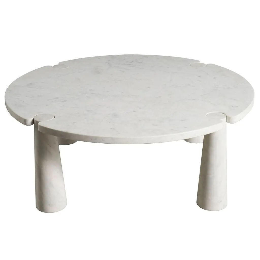 The Ricky Cocktail Table stands as a pinnacle of ultra-modern design with its round silhouette and a body entirely crafted from White Banswara, showcasing a captivating marbling effect. The contemporary interplay between the tabletop and its robust legs adds a sculptural element, making this table a striking centerpiece in any modern living space.