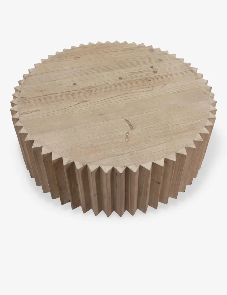 Made from reclaimed pine, Rikesh offers a striking centerpiece that balances a modern coffee table design with natural grain appeal. The angular fluting fashions this round coffee table with an eye-catching silhouette that will bring a signature touch to your living room or lounge.
