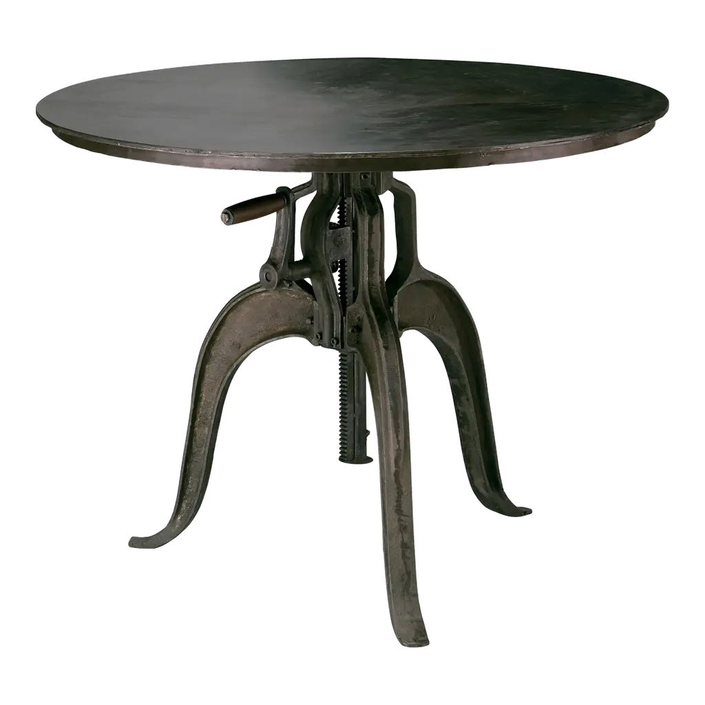 Give your space an industrial edge with our Riley Coffee Table. Crafted from cast iron with authentic patina and a hand crank mechanism, this distinctive base is both functional and full of character. Inspired by antique machinist tables, it features rugged gear detailing and a sculptural iron tripod base that’s as sturdy as it is eye-catching.Whether you're creating a one-of-a-kind kitchen island, a statement pub table, or a conversation-starting desk, this base offers adjustable height and a unique, old-world aesthetic that pairs beautifully with its mango wood top in a whitewash.