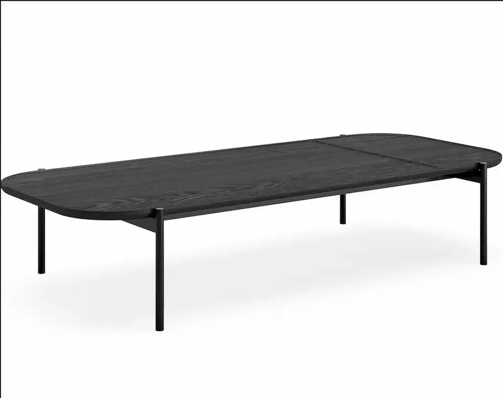 Riley coffee table by Dare Studio, 2018Dimensions: H 26 x D 55 x W 130 cmMaterials: European white oak with black stain, powder-coated frame in black RAL 9005Also available in American black walnut and wax oiled finish.Dare Studio is a British design company producing award winning furniture for luxury residential interiors and high specification contract environments. Established by Sean Dare in 2009, Dare Studio champions the skills of the finest craftsmen and sets a benchmark for the very best in contemporary design and manufacture. Working with globally respected designers sharing a holistic understanding of the manufacturing process, Dare strives to create pieces which are timeless, future classics.