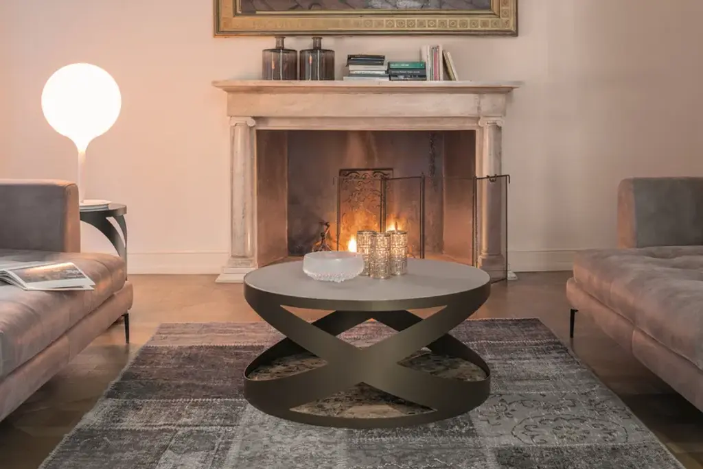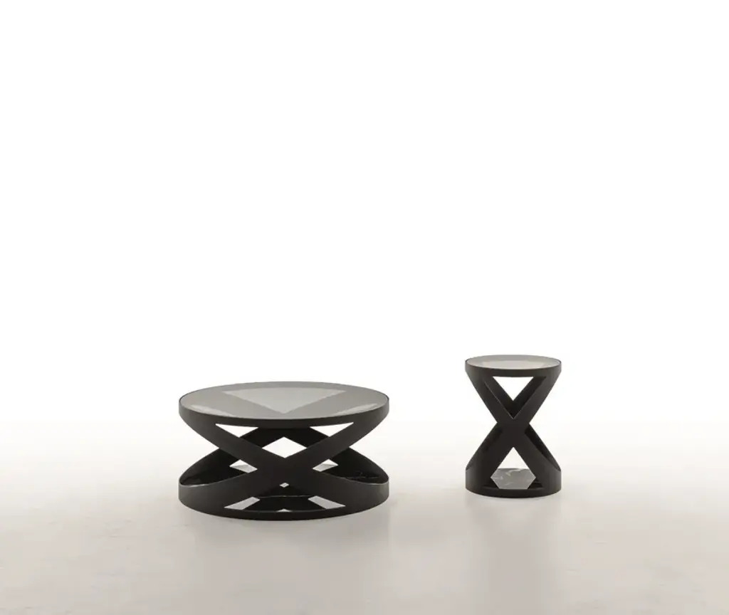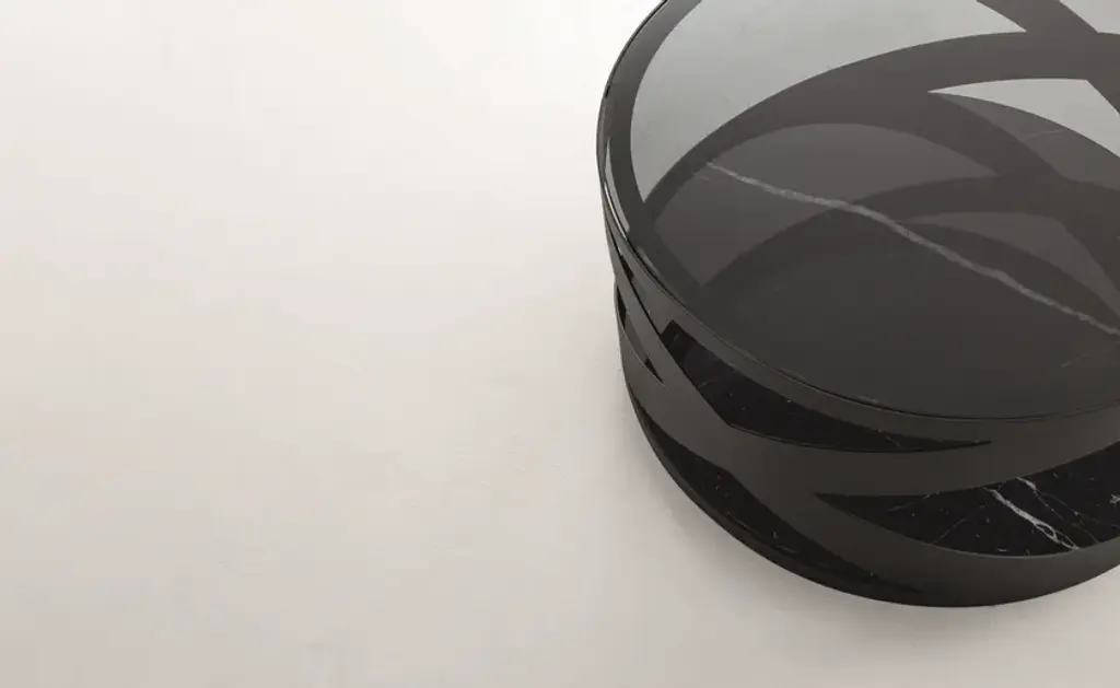 A coffee table, capable of moving and amaze just like a dining table: Rimini standsout everywhere, thanks to its metal structure’s peculiar design, to its base’s Italian marble richness, and to the varnished and acid etched glass top. Three different materials on just one object offer you a huge range of combinations: white, black or bronze metal; white Carrara, black Marquinio, Emperador bronze marbles; transparent grey, black, white and beige acidetched glass.