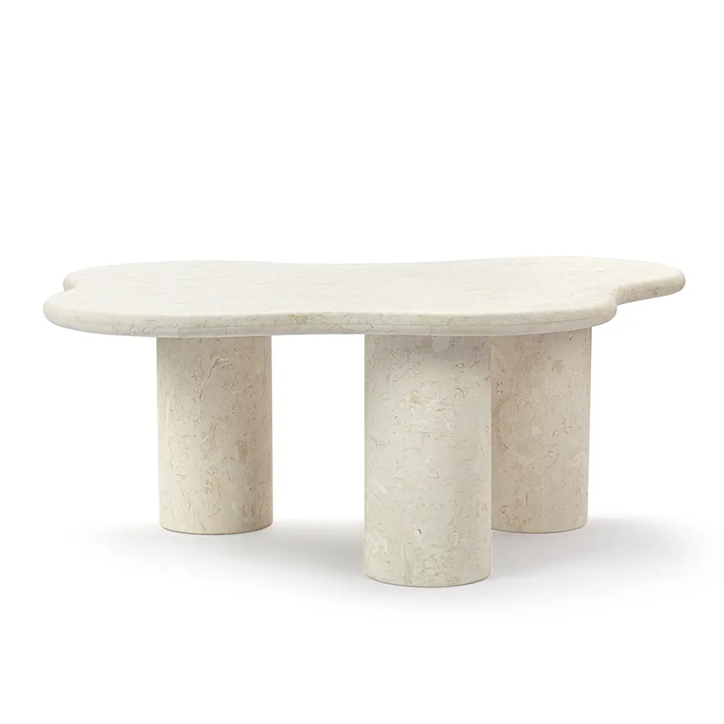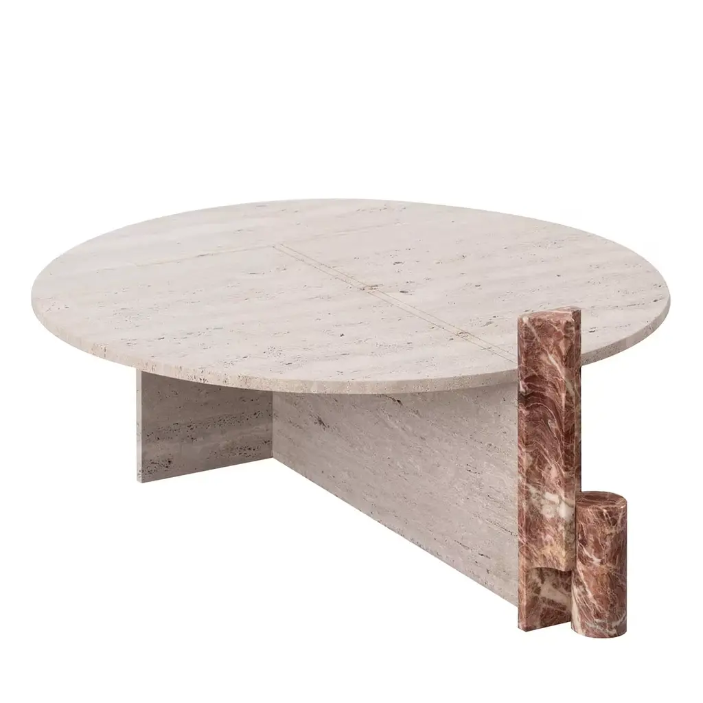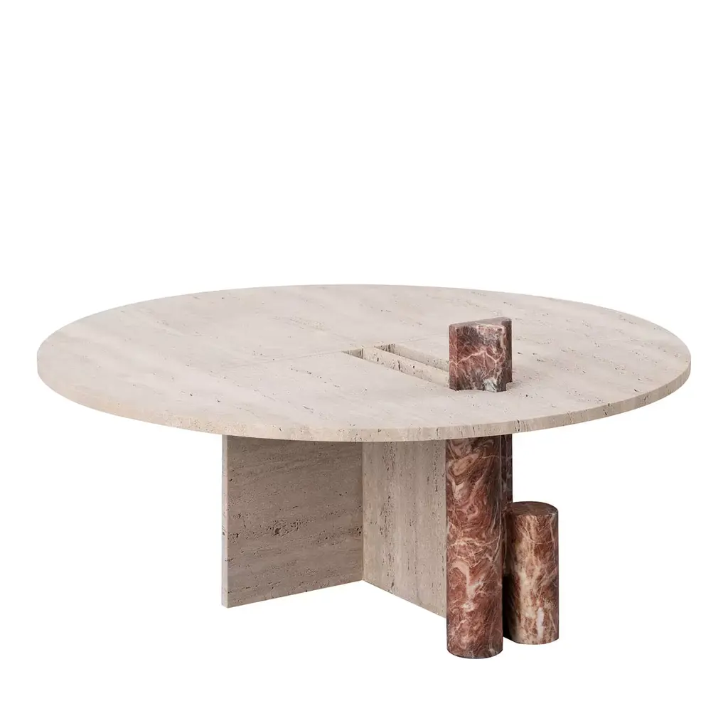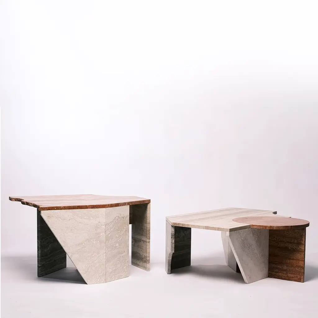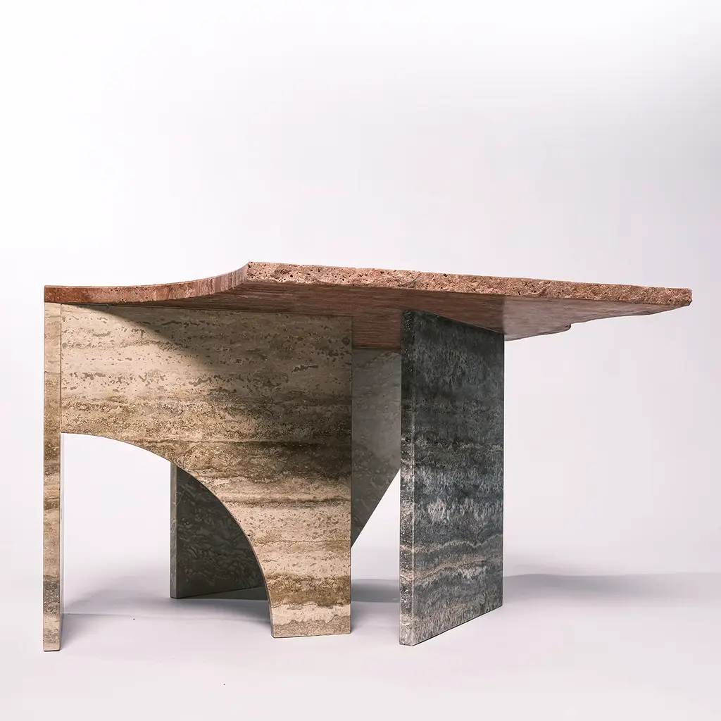A playful cut-out concept that implies freedom defines this one-of-a-kind coffee table. Sustainable and eccentric, its silhouette combines leftovers of different travertines for a look that demands attention. A chaos that is here a synonym for art defines this singular piece. A different version can be found in the Artemest catalog. This item has been part of the exhibition MARMO on display at Artemest Galleria until May 2023.