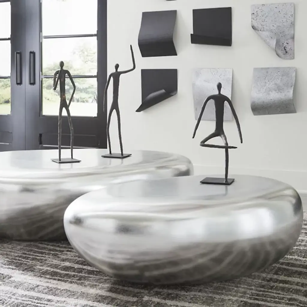 Inspired by the natural beauty of water-worn stones, designer Jason Phillips created the River Stone collection, featuring the River Stone Coffee Table. Crafted from composite, this coffee table has a soft, rock-like shape with no sharp edges, making it safe and inviting for any space. Its flat top offers practical functionality, while its organic form adds understated elegance. This piece reflects Phillips Collection’s modern organic ethos, blending nature-inspired design with contemporary style.