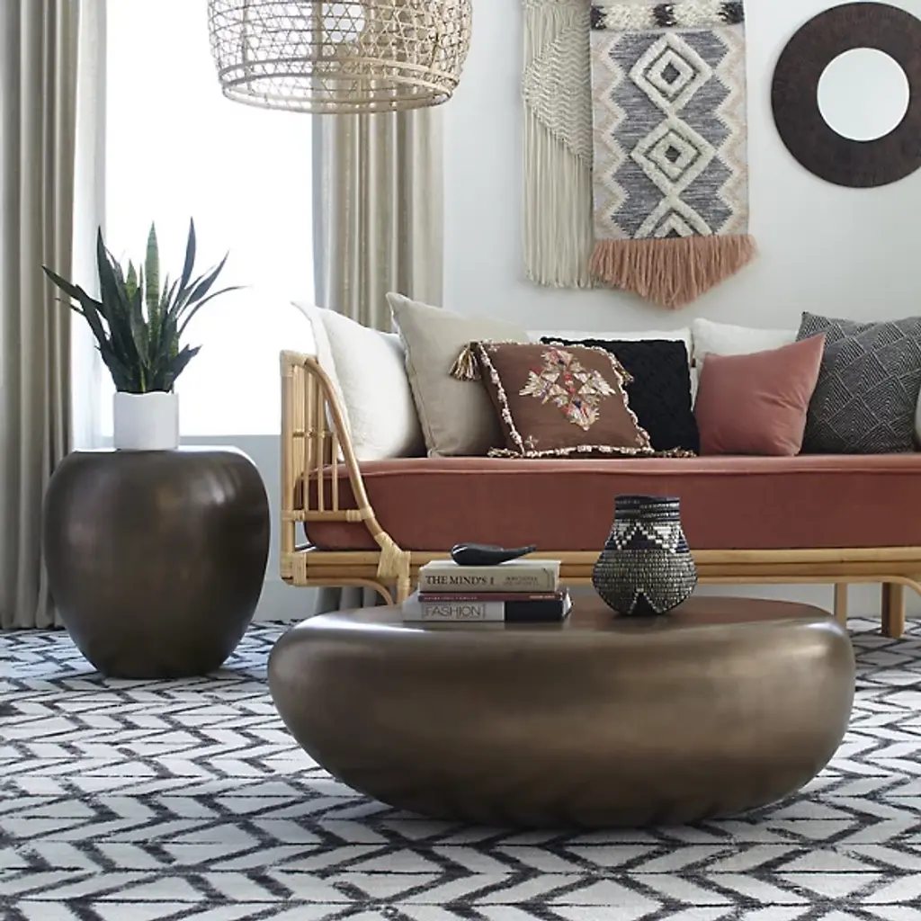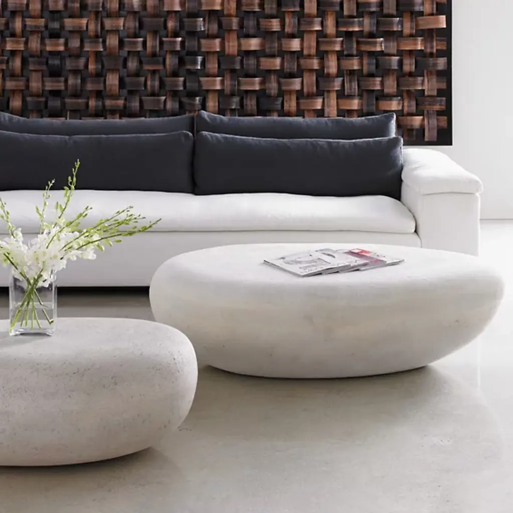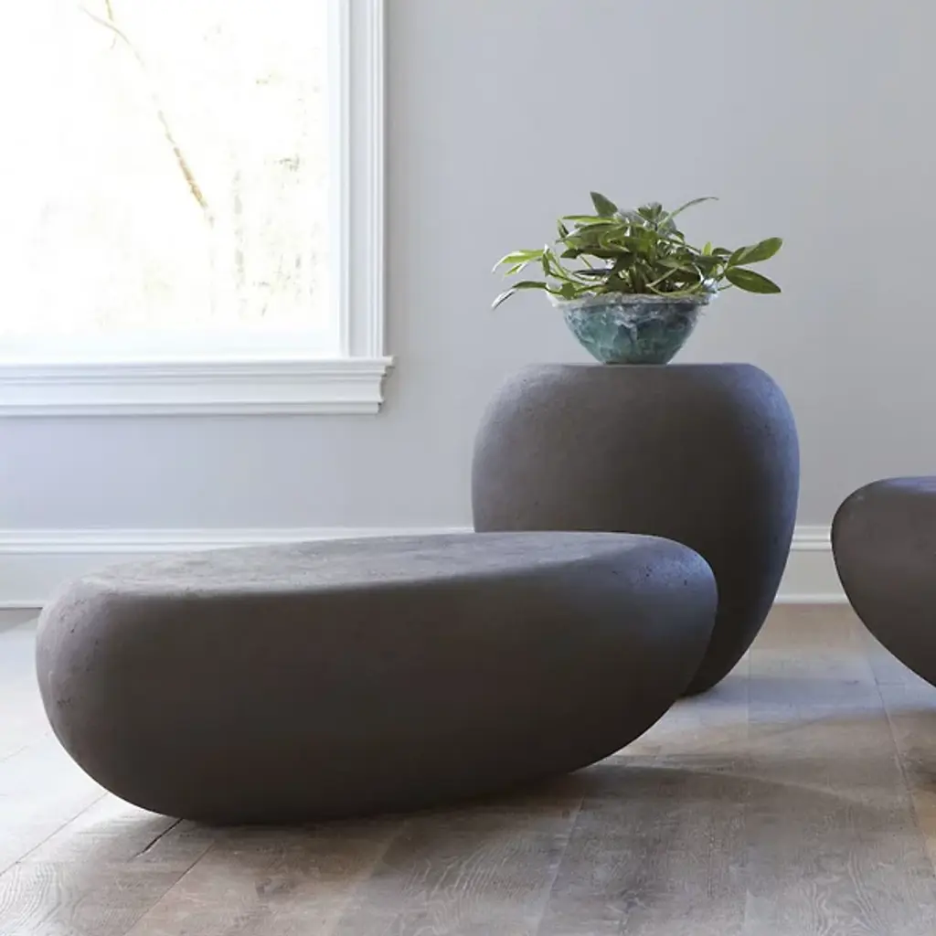 Inspired by the natural beauty of water-worn stones, designer Jason Phillips created the River Stone collection, featuring the River Stone Coffee Table. Crafted from composite, this coffee table has a soft, rock-like shape with no sharp edges, making it safe and inviting for any space. Its flat top offers practical functionality, while its organic form adds understated elegance. This piece reflects Phillips Collection’s modern organic ethos, blending nature-inspired design with contemporary style.