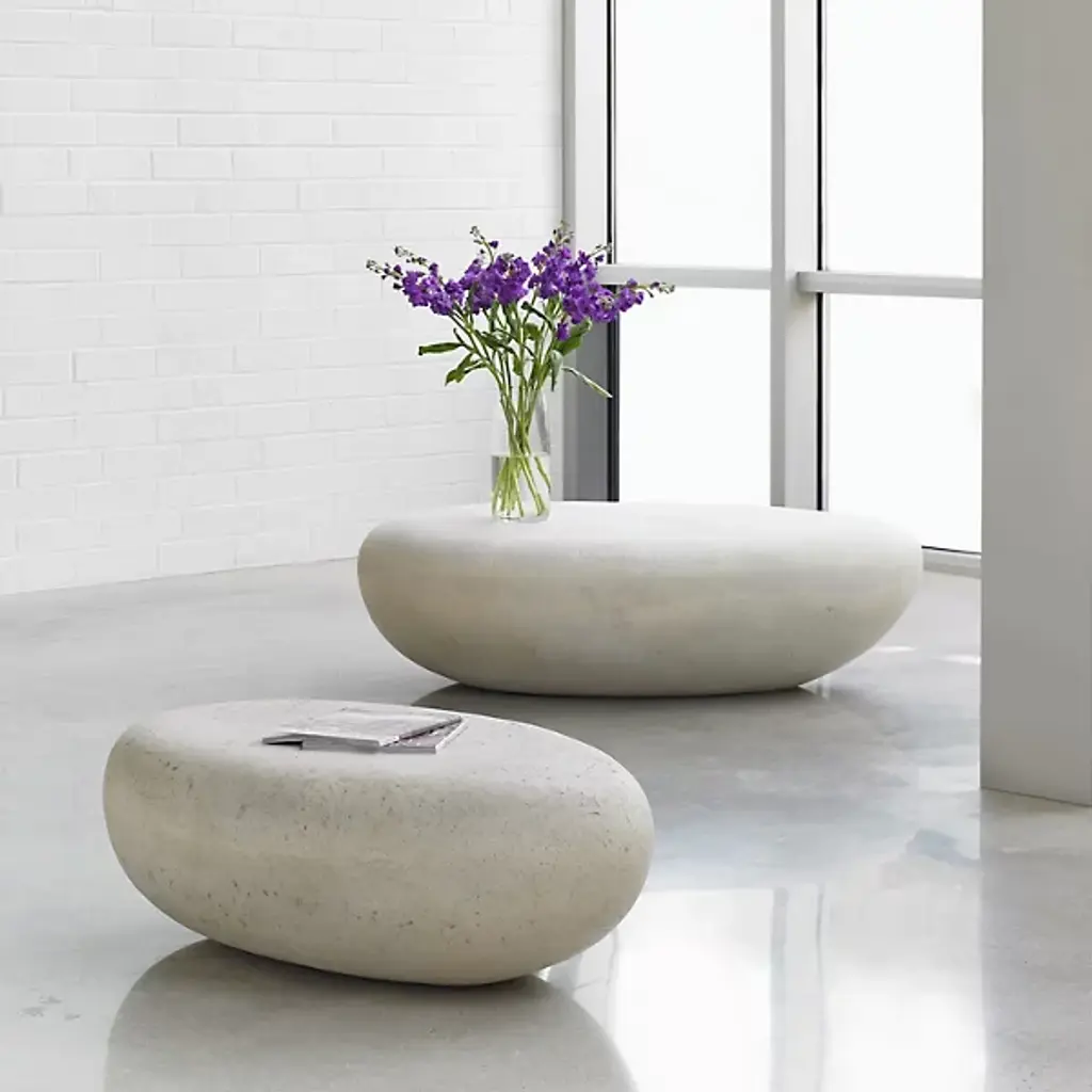 Inspired by the natural beauty of water-worn stones, designer Jason Phillips created the River Stone collection, featuring the River Stone Coffee Table. Crafted from composite, this coffee table has a soft, rock-like shape with no sharp edges, making it safe and inviting for any space. Its flat top offers practical functionality, while its organic form adds understated elegance. This piece reflects Phillips Collection’s modern organic ethos, blending nature-inspired design with contemporary style.