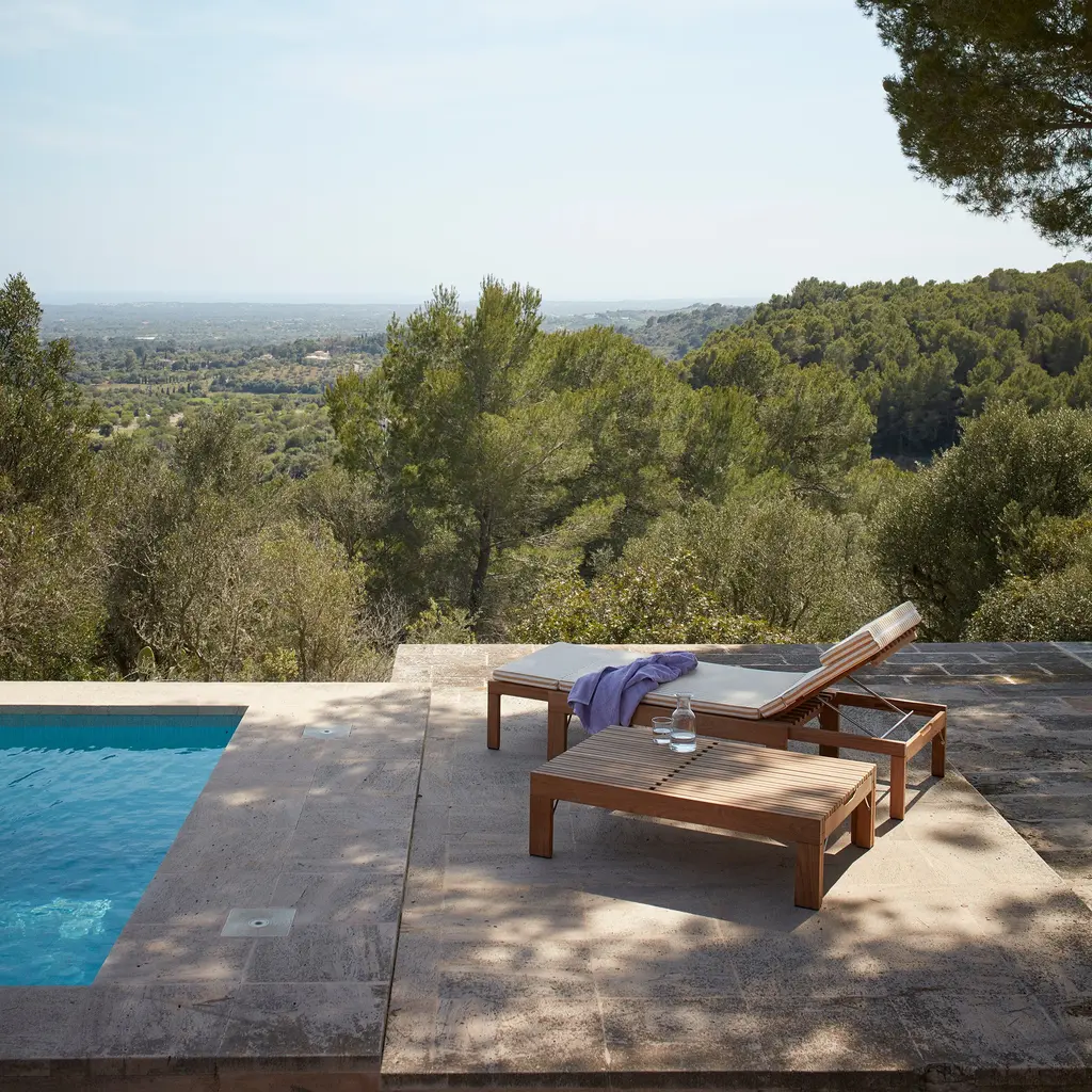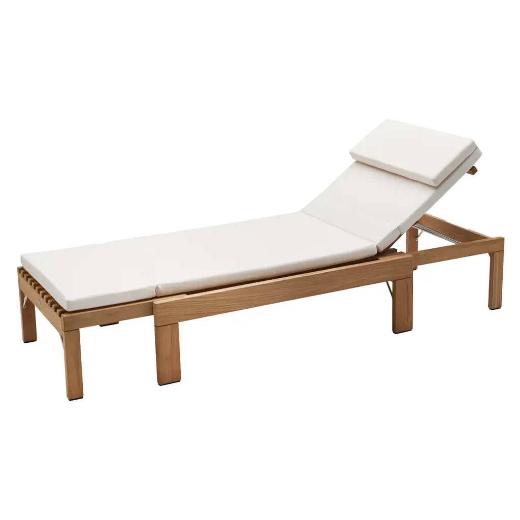 Ingeniously, Danish designer Povl B. Eskildsen combines a sunning chaise, bench and coffee table all in one handsome package. Riviera’s versatile design has become a contemporary classic with its expandable configuration in slatted solid-teak. The lounge can be readily extended in length and a section raised to form the backrest as outdoor needs dictate.