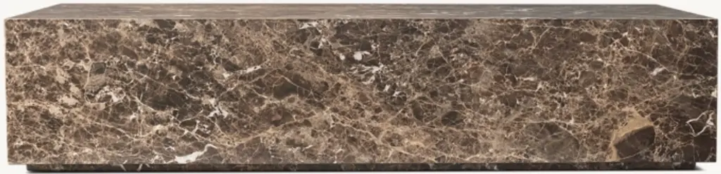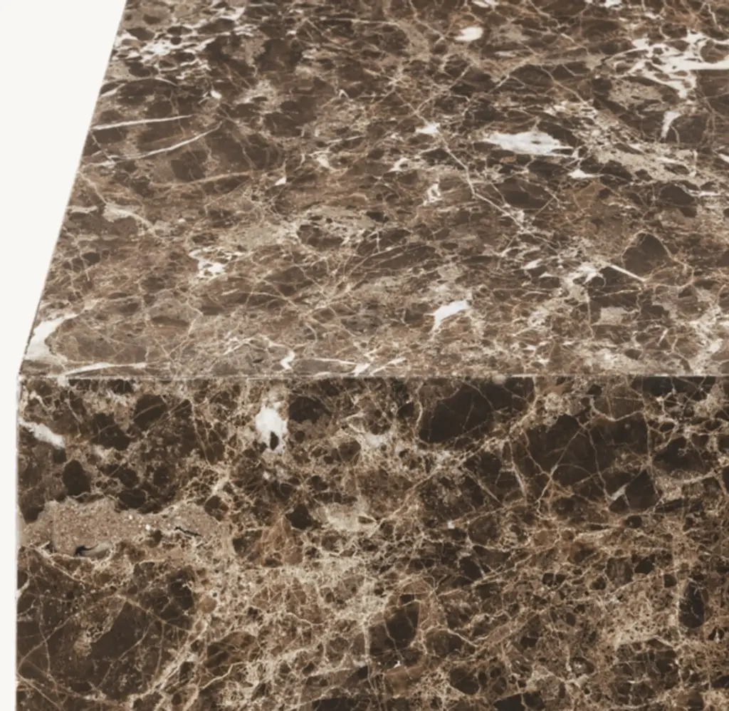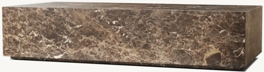 The elemental shape of the Rocco table showcases the beauty of natural stone, rich with the variable color tones and vein patterning that make each piece unique. A recessed plinth base casts a shadow below the sculptural form, lending a floating effect. SHOP THE ENTIRE COLLECTION