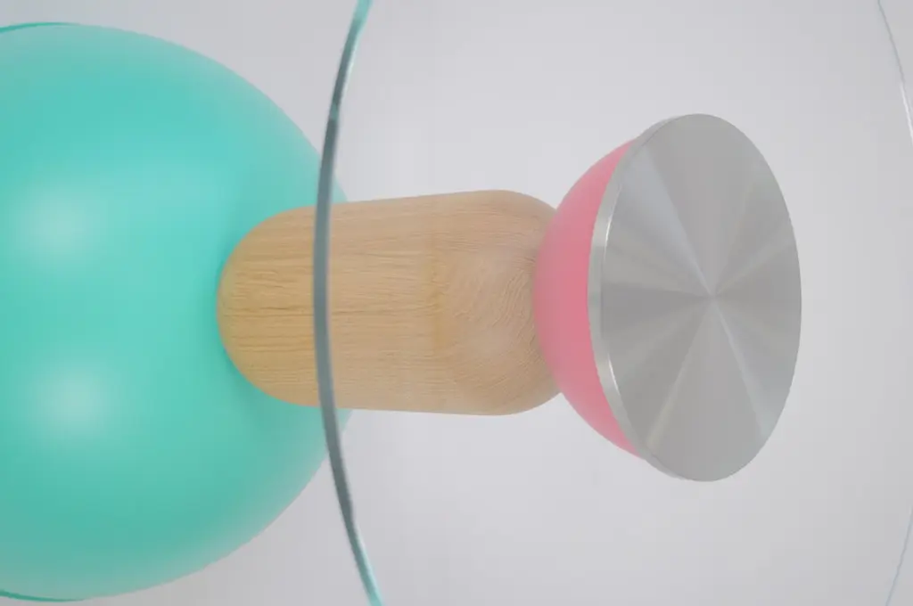 A collection of small tables of different sizes and heights, composed of a versatilesuperimposition of curved shapes made of wood and coloured metal. Like dancingfigures, these furnishings, at the same time playful and functional, enhancehome spaces by evoking the harmony and colours of a great Venetian ball. Rondò is made of lacquered wood, extra-clear glass, canaletto walnut, italian walnut, oak, painted metal, stainless steel disc to support thye glass top. Designed by Debonademeo for Medulum. Una collezione di tavolini di varie dimensioni e altezze, composte da una versatilesovrapposizione di forme curve realizzate in legno e metallo colorato. Come figuredanzanti, questi complementi d’arredo ludici e funzionali al Tempo stesso,conquistano gli spazi domestici rievocando l’armonia e i colori di un gran balloveneziano.