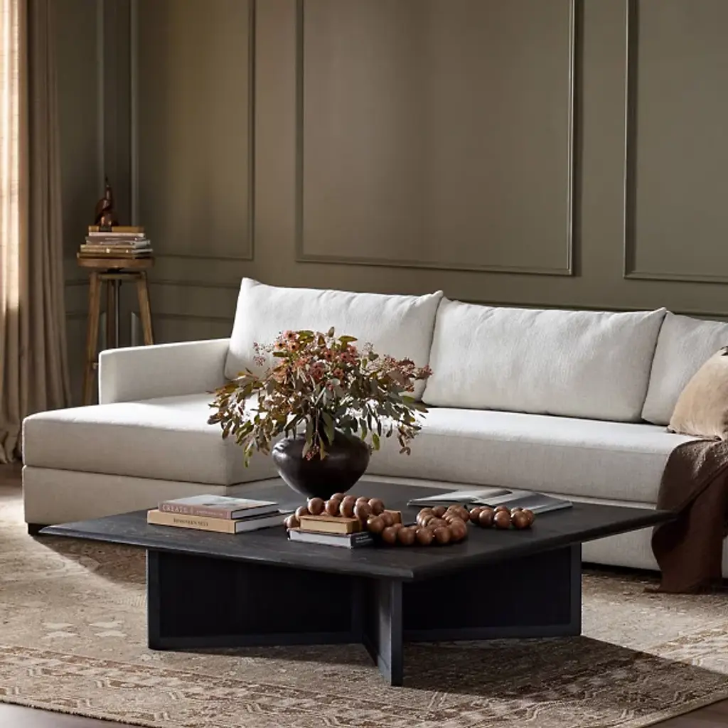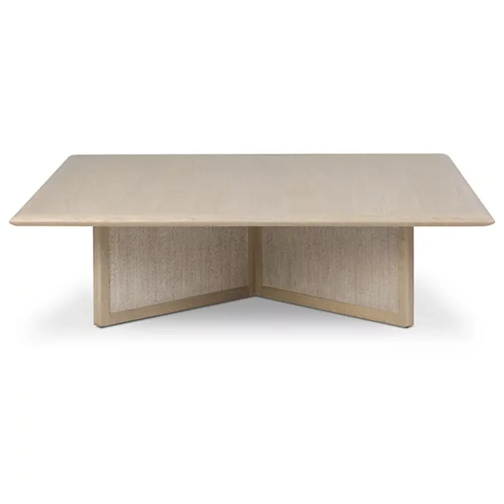 The Rosenell Square Coffee Table from Four Hands displays clever craftsmanship through its woven paper cord base panels. The oak construction provides a stable foundation that holds up to 100 pounds. Handwoven details wrap around the base, adding organic texture beneath the smooth tabletop. The squared design maximizes surface area while maintaining balanced proportions. This table bridges the gap between artisanal craft and everyday function, offering both a distinctive design element and a reliable surface for daily activities in your living space.