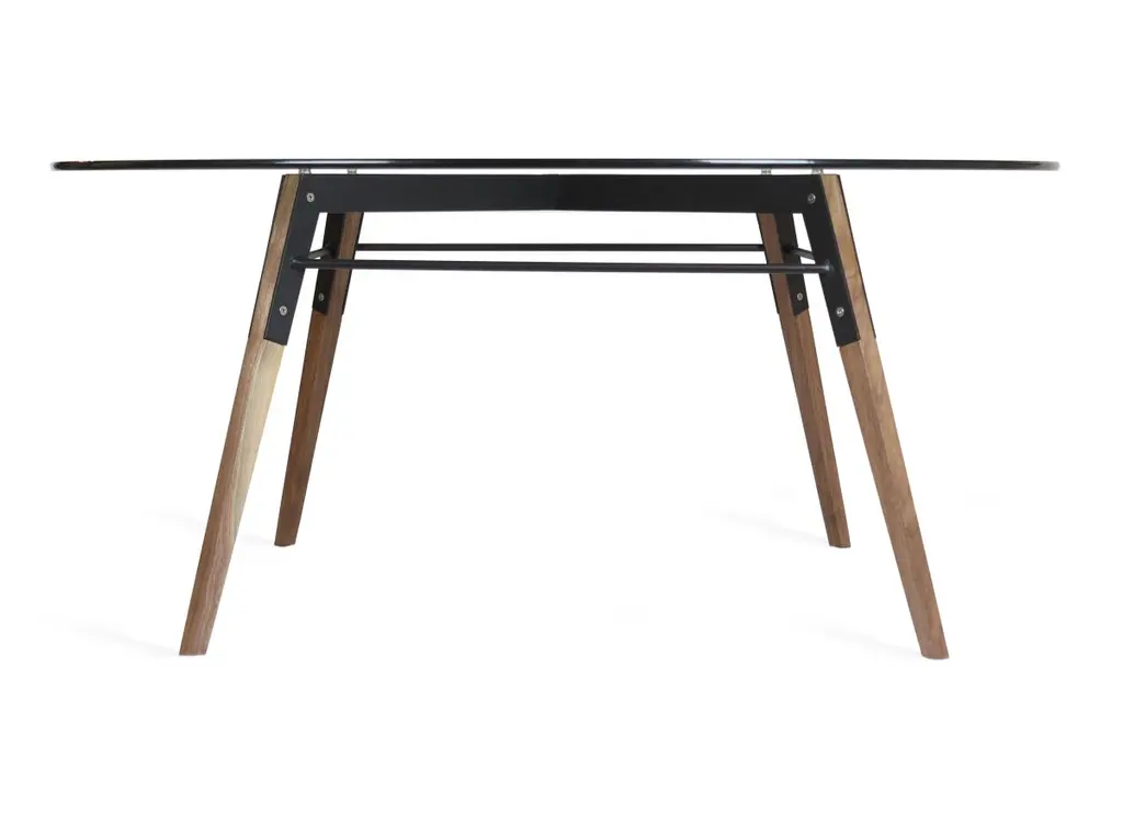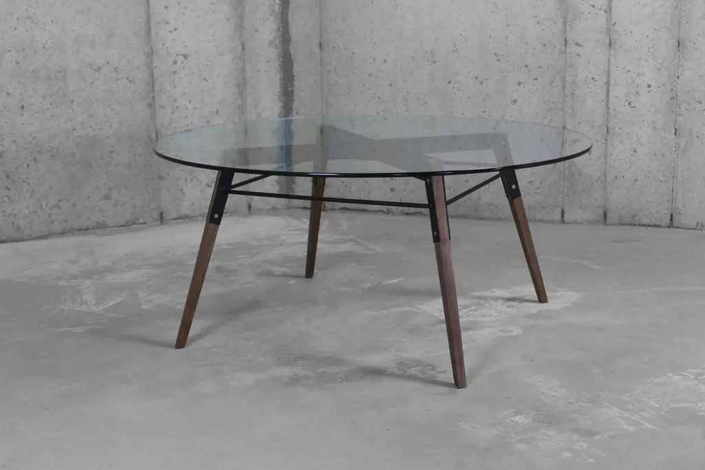 A perfect mix of Scandinavian inspiration and industrial flare that cohesively come together to make a statement piece which embodies simplicity, functionality and elegance. The Ross is constructed of solid wood (American Walnut or Maple) held together by a powder-coated steel frame topped off with tempered glass. Offered in matte black and white.