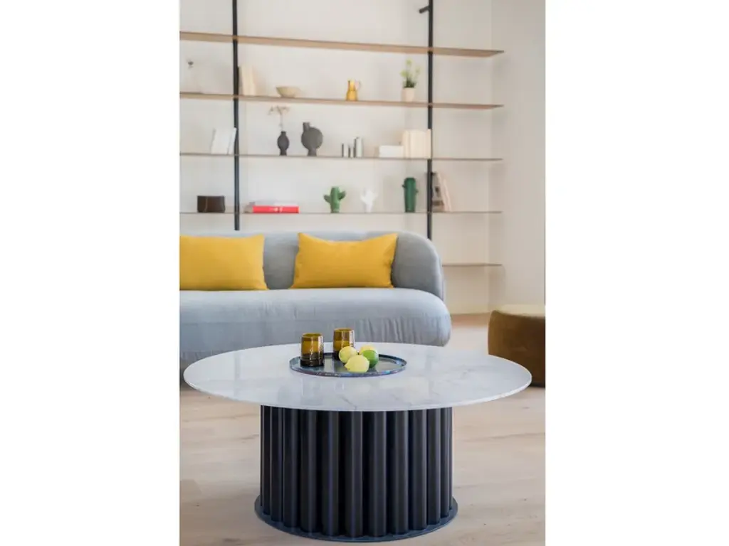With an updated Art Deco elegance, the Rotonde coffee table has an imposing, sculptural shape. Like a pedestal syncopated by its carbon sections, the bold base puts extra emphasis on the magnificent Carrera marble top. This table will give your interiors a true personality.The first BELULL collection, designed by Emmanuel Gallina , combines elegance, timelessness and simplicity. Inspired by the Médoc landscape, this range uses carbon combined with other noble materials to create modern and unique furniture.