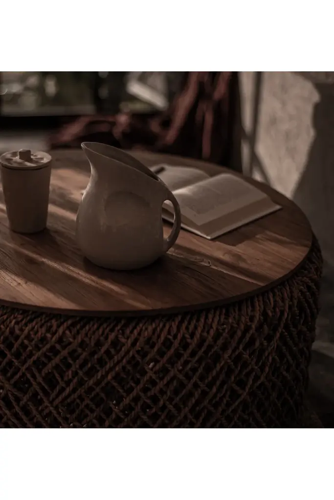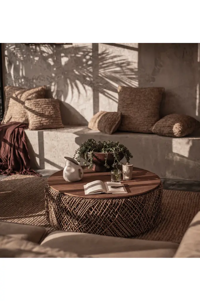 This versatile piece can be used as a coffee table, pouf, or for decoration. With the top removed, it can even be used as a basket. The Knut Coffee Table is made of eco-friendly materials, with the sides made of handwoven abaca fibers and the removable top made of reclaimed teak wood. A multifunctional eyecatcher in every room.