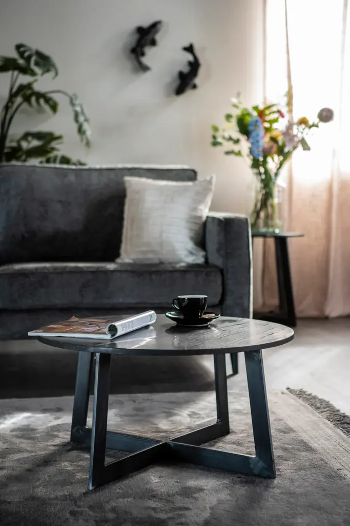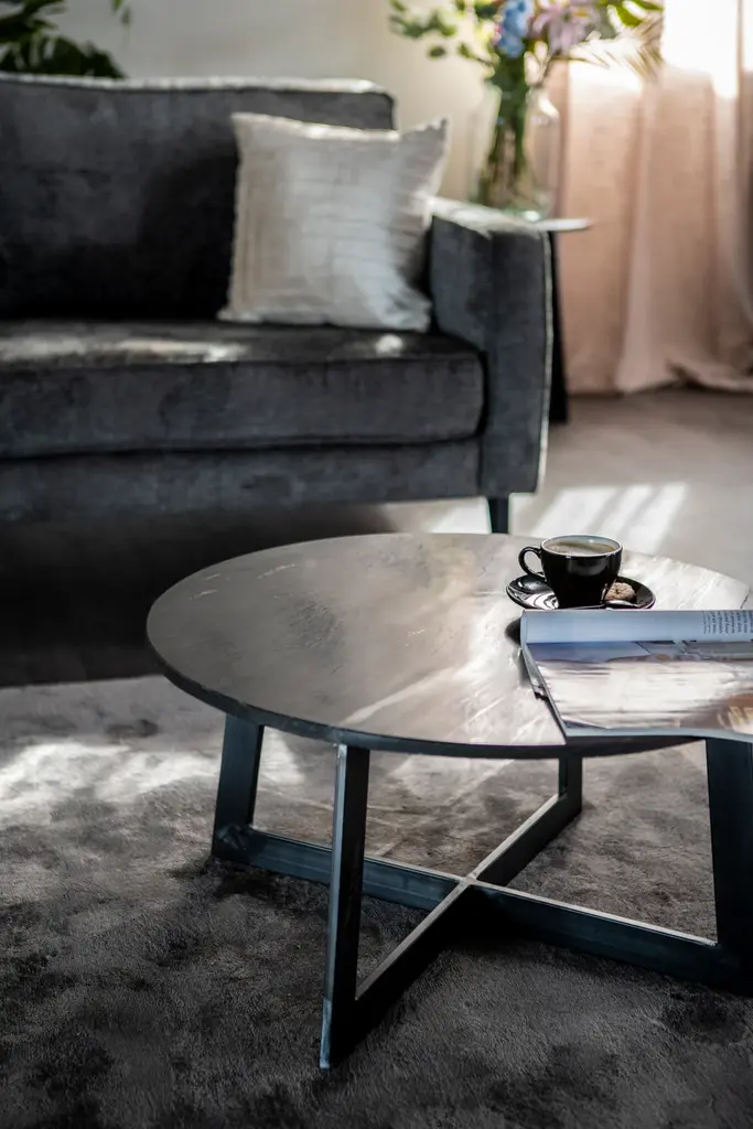Keep your decor simple yet stylish with this open and airy medium size round coffee table. With a criss-cross open metal base in a classic black finish, it is beautifully complemented by a black marble top.