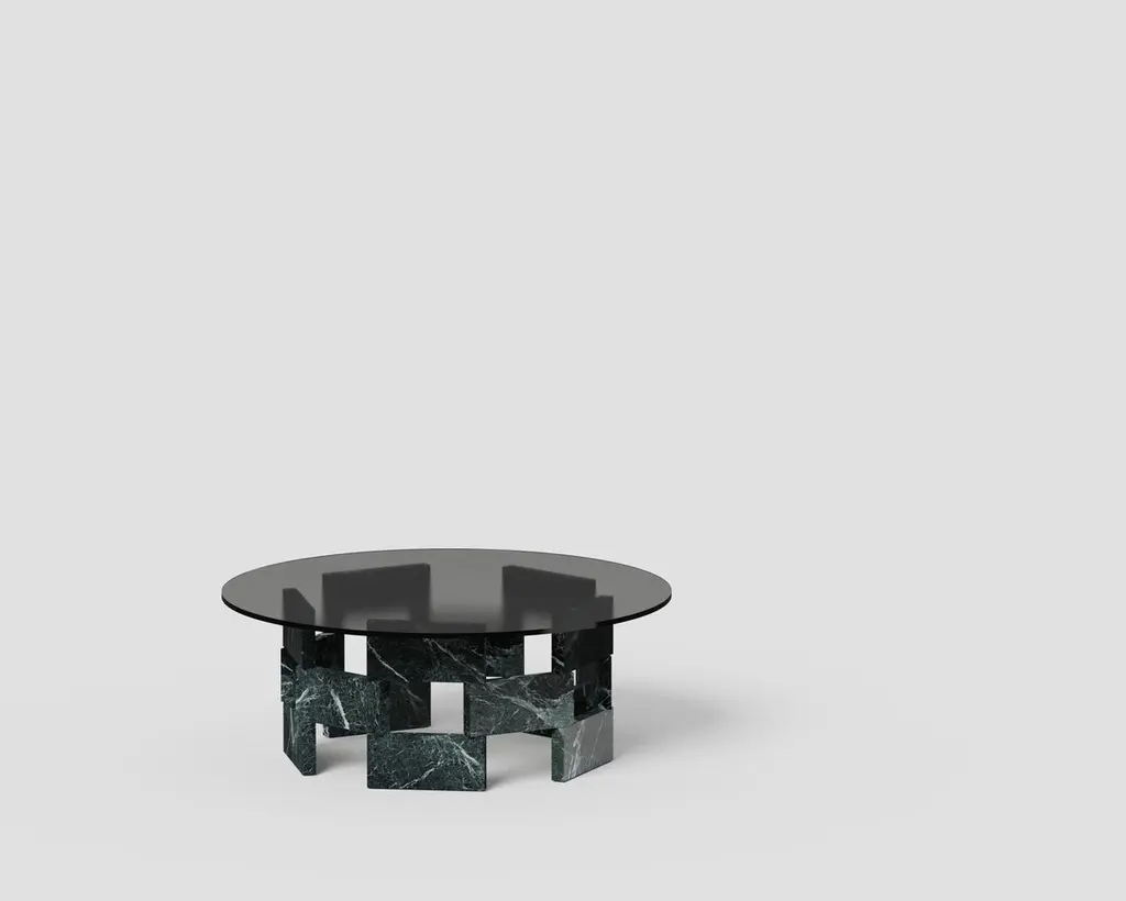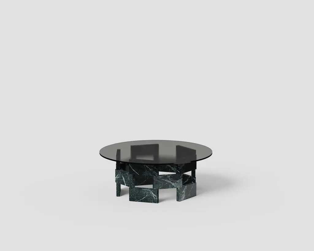 Opus Mod 4 Marble, Extrawhite Glass And Metal Low Table by Antonio De MarcoDimensions: Ø 130 x H 38 cm. Materials: Verde Notte marble, metal, and glass.Available in different material options. Please contact us.OPUS is a modular system of marble blocks which, combined together, form the bases for a series of tables, desks and coffee tables.Antonio de Marco (1983) has been involved in mechanics and carpentry since he was very young; are areas that represent for him a constant stimulus to seek, create and experience new ways of transforming matter.Passionate about how things are done, the elements they make up, to what and to whom they serve; the objects he designs have the ambition not to fade over time, but to sediment in the memory of the one who uses them.He studied at the Politecnico di Milano at the Royal Danish Academy in Copenhagen and holds a master at the Marangoni Institute in Milan. Than works in barcelona for Santa&Cole and in Milan for Isao Hosoe and than Matteo Ragni Studio. In addition to his design activity, he teaches in the Design Methodology master’s program at NABA in Milan and the Scuola Politecnica del Design, as well as in the three-year program at Istituto Marangoni.In his studio he cont inued the research and experimentation within design; a place where to think through his hands.