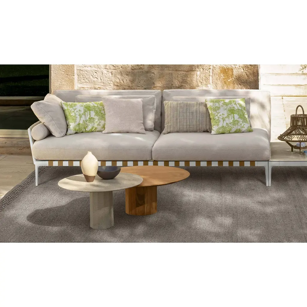 The Salinas coffee table has a refined and elegant design that exploits the raw material, to create a solution of continuity between the interior and the garden. The solidity of the concrete conveys a natural charm to the external environment in which it is placed.