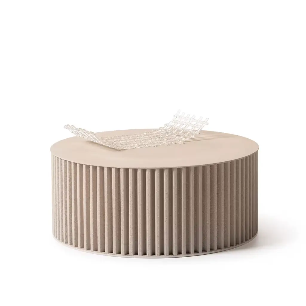 Round Corkcrete Beige Aluminum Coffee Table #1